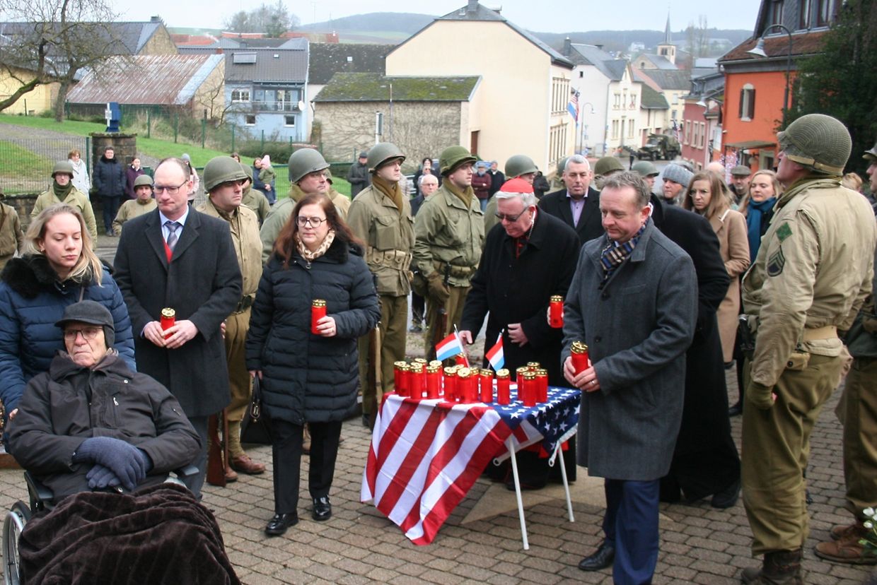 No der Aweiung vun engem Gedenksteen zu Léilien, deen de südlechste Punkt vun der Ardennenoffensiv markéiert, hunn d’Gemeng Rouspert-Mompech an d’Stad Iechternach op weider Manifestatiounen am Kader vun der Commemoratioun „80 Joer Ardennenoffensiv” invitéiert.