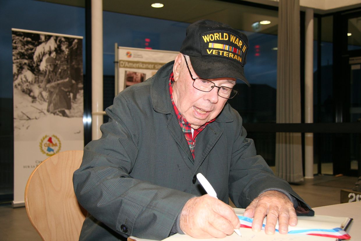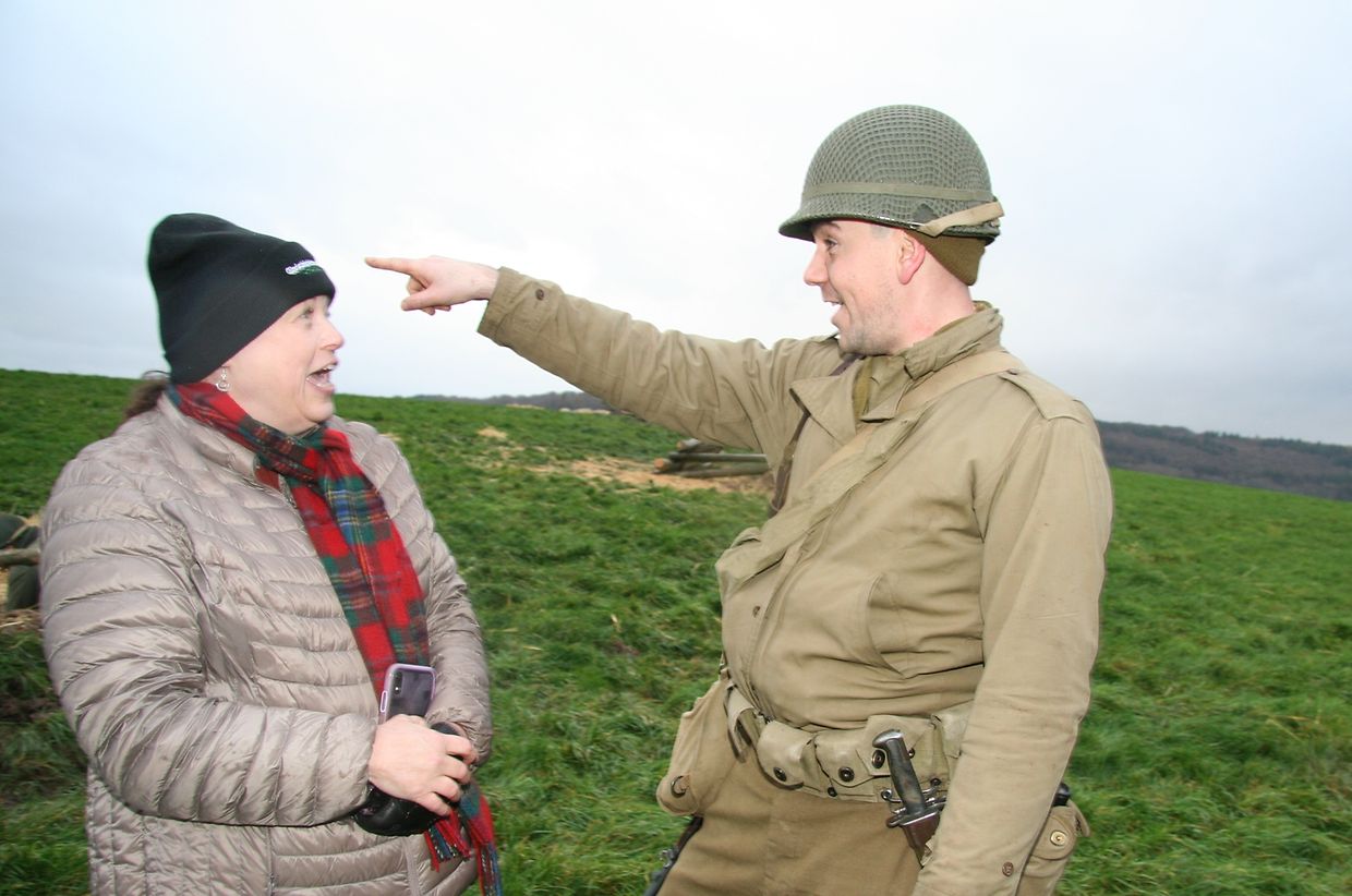 Samschdes, den 14. Dezember, huet den 95 Joer alen Veteran Bob Burrows, deen mat der 80. Divisoun am «No Man’s Land» hei am Land gekämpft huet, d’Ausstellung «Frontgebitt» an d’Re-enactors op der «Schlammfuer» besicht.