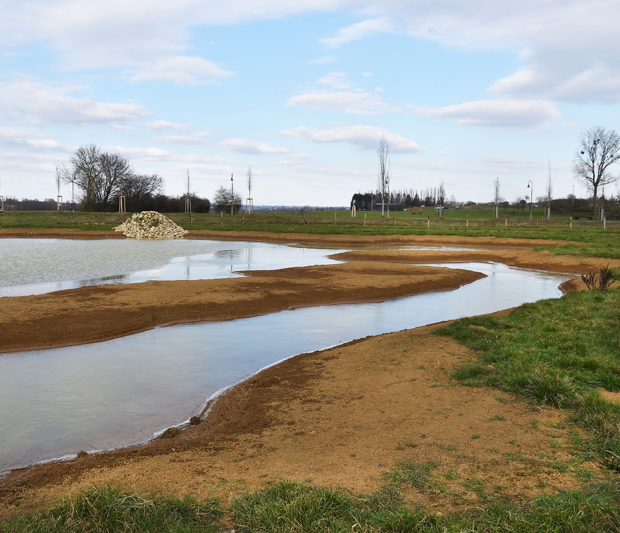 Der neue kleine Bachlauf wird einen natürlichen Wasserhaushalt herstellen und das Feuchtgebiet bis in den frühen Sommer hinein mit Wasser versorgen. Danach kann das Gebiet langsam für den Rest des Jahres austrocknen. Die jahreszeitlich wechselnden Wasserstände in der Flussaue erlauben die Bildung und Freilegung von Schlammflächen, welche den Lebensraum der darauf spezialisierten Zielarten bilden.
