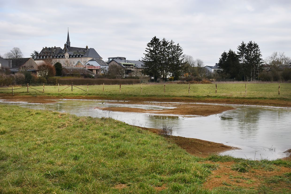 Auf einer Fläche von rund zwei Hektar, welche zum Großteil von Privatbesitzern zur Verfügung gestellt wurde, sind mehrere Gewässer mit einer Gesamtfläche von 65 Ar entstanden. Zudem wird der kleine temporäre Bach Diebelchen zum Teil wieder aus einem Rohr an die Oberfläche gebracht und kann dann frei auf einer Länge von 280 Meter in einen Zufluss der Alzette fließen. In dem stark vom Menschen verformten Bachtal, liegt die Alzette sehr tief ein. Durch den dadurch entstehenden Drainageeffekt trocknen die Wiesen im Tal paradoxerweise häufig schneller ab, als außerhalb der Aue.
