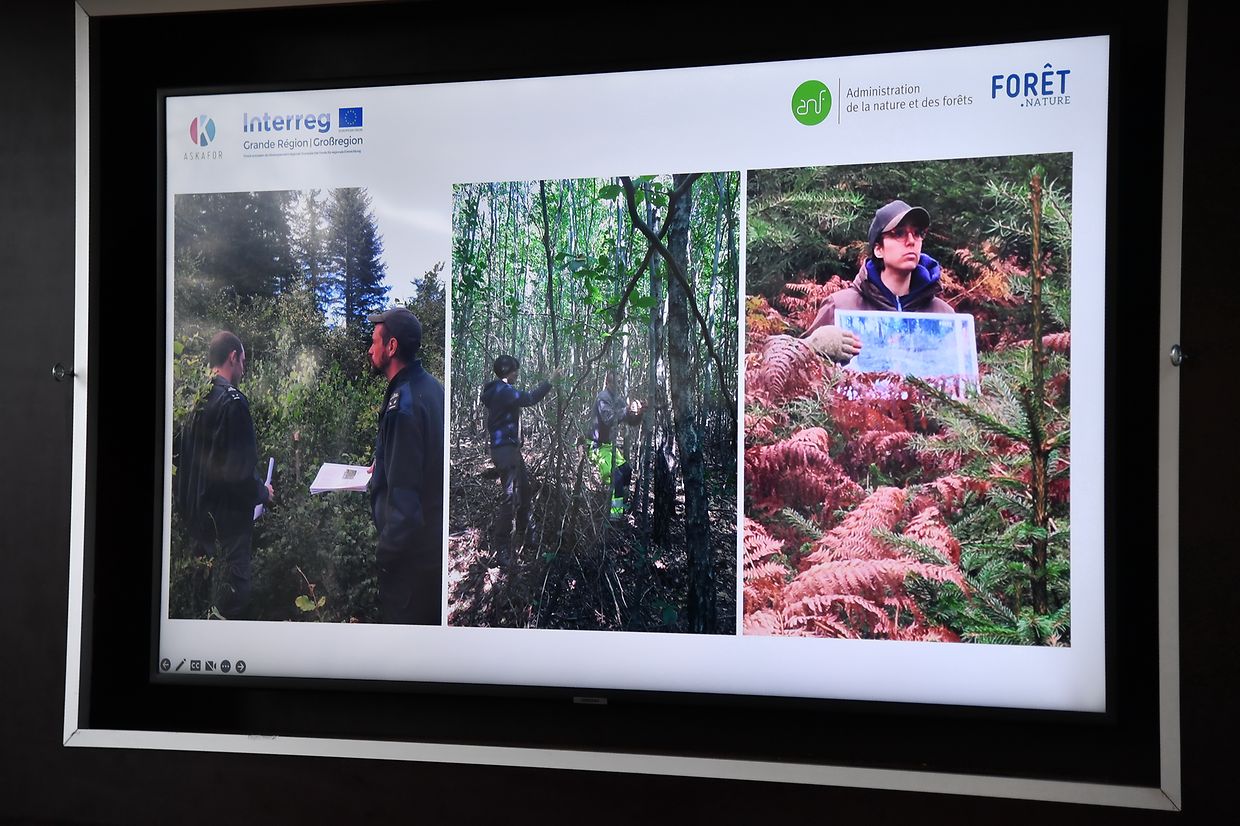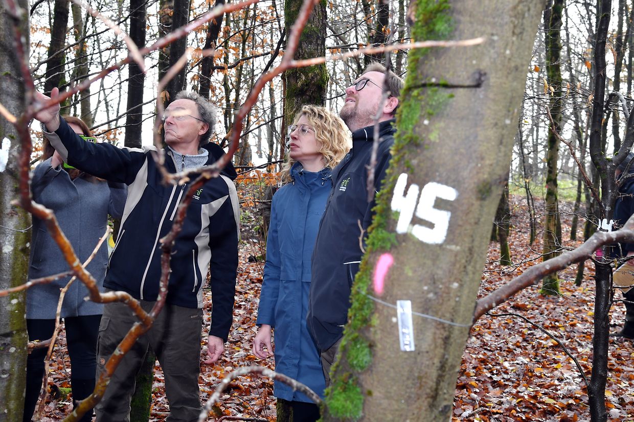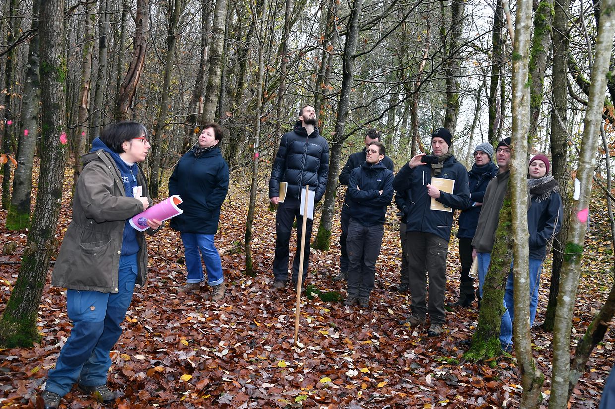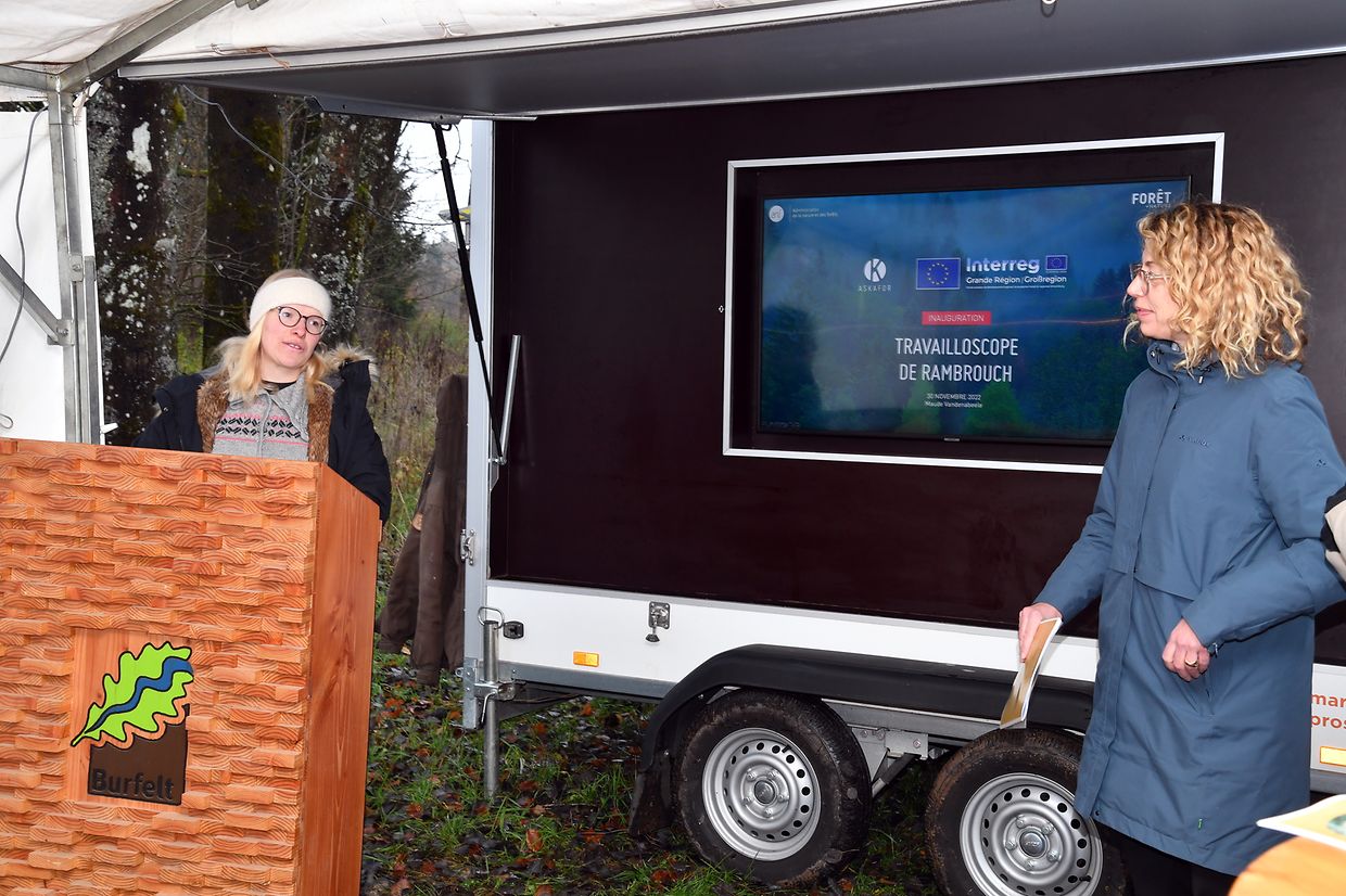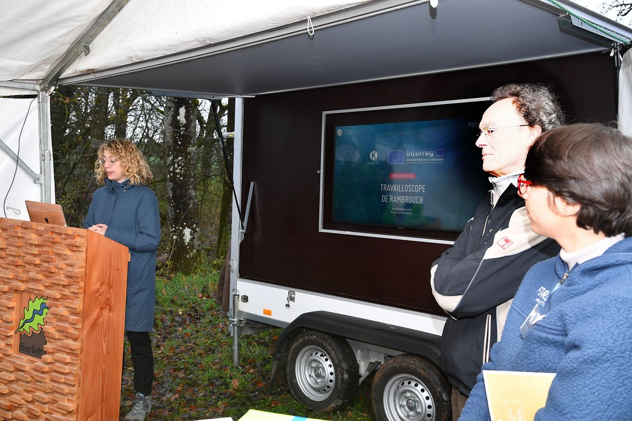 Perlé: Die Umweltministerin, Joëlle Welfring, die Naturverwaltung, die Gemeinde Rambrouch sowie die Vereinigung Pro Silva Luxemburg hatten am 30.11.22 zur Einweihung des ersten „Travailloscope“ nach Perlé eingeladen.