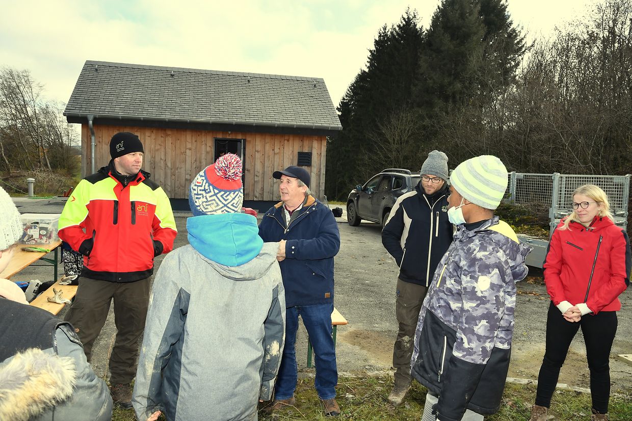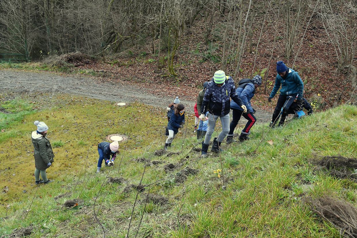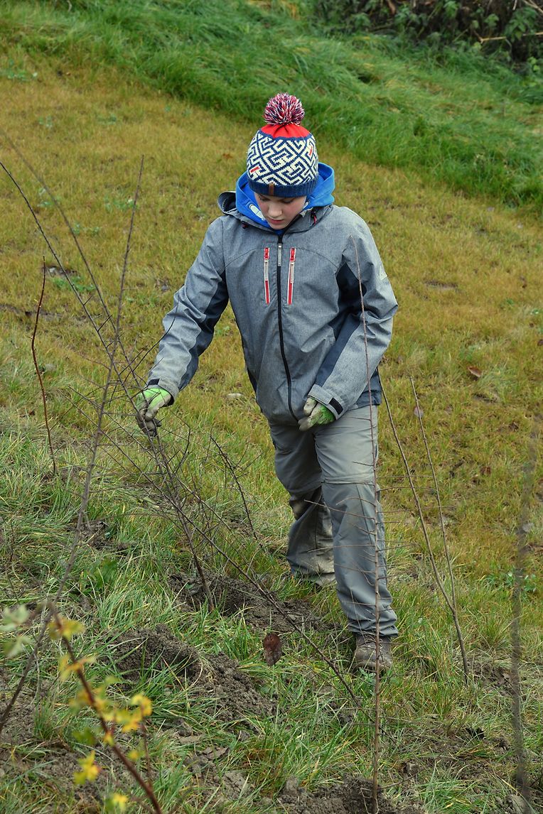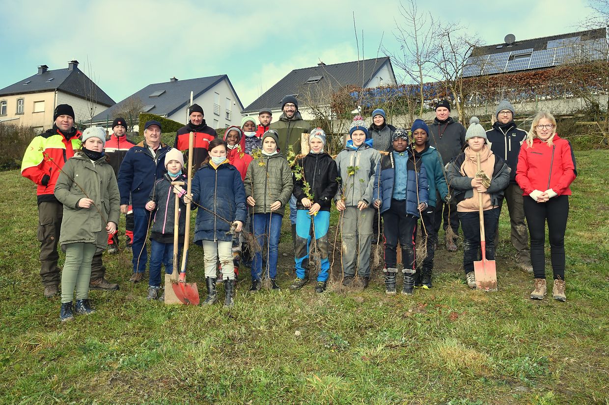 Pärel: Zu Lëtzebuerg, gouf 1991 den Dag vum Bam ënnert dem offizielle Numm „Journée de l’arbre“ vun der Stëftung Hëllef fir d’Natur agefouert a gett gewéinlech am Laaf vum Mount November organiséiert. Sou waren déi motivéiert Schüler aus dem Zykel 4.2 vun der Kietschter Grondschoul mam Schoulmeeschter Paul Hermes trotz e bëssen killen Temperaturen, erausgerëckt, fir ënnert der Leedung vum Fieschter Serge Hermes mat sengen Equippen, um Bann zu Pärel ronn 600 Heckeplanzen fachgerecht an de Buedem ze setzen. Niewt verschidden Zorten vu Sträich sin och nach 9 Uebstbeem geplanzt gin. No deser Aktioun, huet de Fieschter Serge Hermes de Schüler de Sënn a Notze vun den Uebstbeem an de Planzen am Detail erklärt an hinnen matgedeelt, dat dess Planzaktioun virun allem derzou bäidréit, nieft der Opwaertung vum Landschaftsbild an der Gemeng Rammerich, och dem Biodiversitéitsverloscht entgéint ze wierken. Doriwwer eraus kritt esou e Projet, durch d’Abanne vu Schloulklassen een enorme pädagogische Wert. A sengem Schlusswuert huet de Buergermeeschter Toni Rodesch mat senger Schëffin Myriam Binck jidderengem , awer virun allem de Schüler säin oprichtige Merci ausgesprach an op de verdingte Chocky mat Croissant invitéiert, den vun der Gemeng Rammerich offréiert gouf . (CR) (Foto: Charles Reiser).