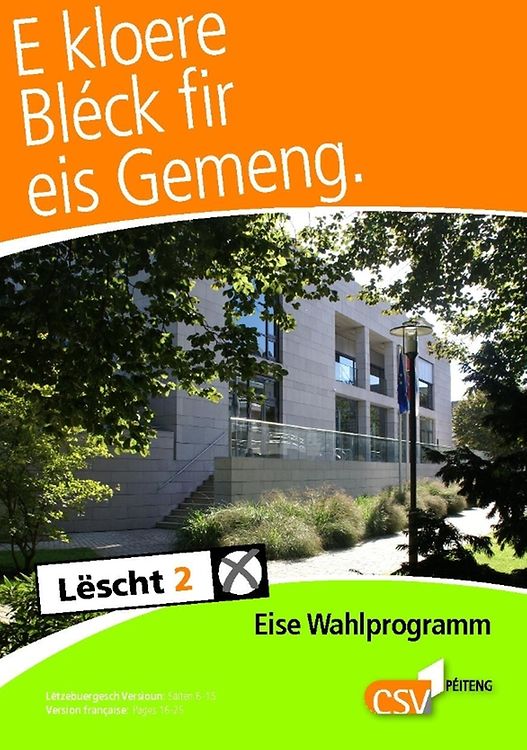 Hei krit Dir en Abléck wéi eng Projeten CSV an eiser Gemeng an de nächste Joere wëll realiséieren.