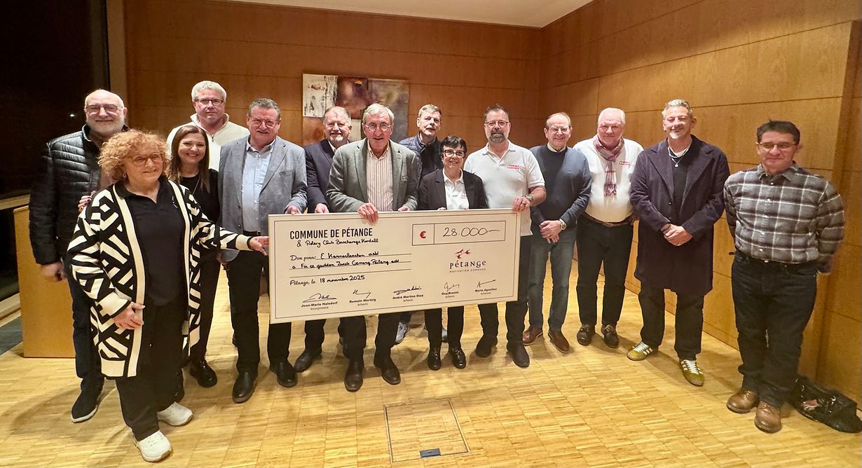 Bei der drëtter Editioun vum “Charity Dinner”, déi am Mee vun dësem Joer stattfond huet, konnte sech d’Organisateuren erëm iwwer eng staark Solidaritéit freen. Am Kader vun enger feierlecher Receptioun am Hochzäitssall vun der Gemeng Péiteng ass un d’Vertrieder vun „Ee Kannerlaachen asbl“ an „Fir ee gudden Zweck Gemeng Péiteng asbl“ e Scheck mat der Zomm vun 28.000 € iwwerreecht ginn.