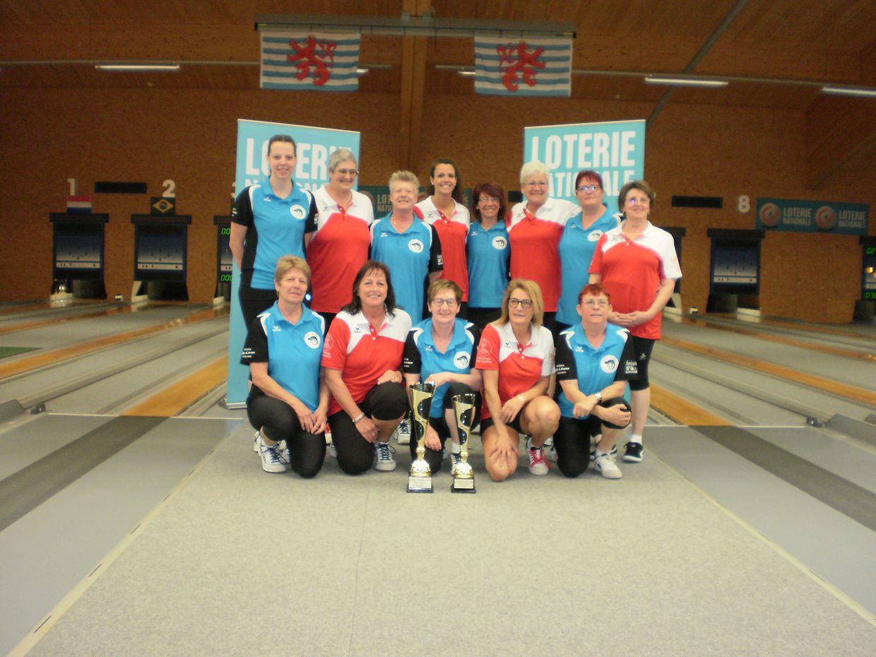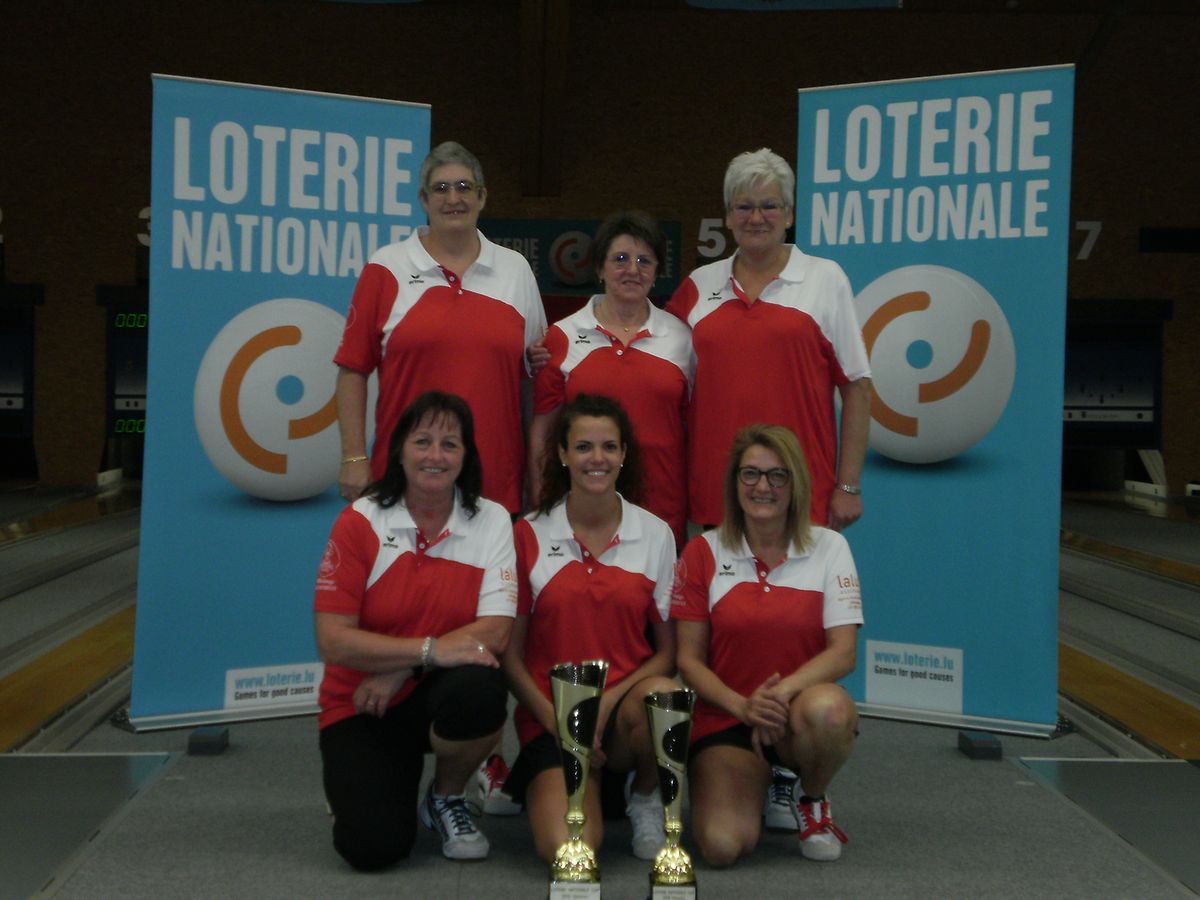 Bei den Damen sollten sich Joker 86 und KSC Amicale 98 gegenüberstehen. Wie zu erwarten wurde der neue Landesmeister Joker 86 seiner Favoritenrolle vom ersten Block an gerecht. Im ersten Block konnten die WM Teilnehmer Parracho Stacy sich mit 732 Holz und Melo Doris, mit der Tagesbestleistung bei den Damen von 754 Holz, einen konfortablen Vorsprung erspielen gegen Hoffmann Sonja mit 642 Holz und Szymkiewicz Marlène mit 654 Holz. Im anschließenden Tandemblock wurde der Vorsprung auf 268 Holz ausgebaut. Für JOKER 86 erspielten Melo Doris/Huberty Christiane 533 Holz und Hoffmann Colette/Moeller Marcelle 480 Holz. Für den KSC Amicale 98 erspielten Thinnes Patricia/Hoffmann Sonia 437 Holz und Manente Margot/Kremer-Brück Mireille 498 Holz.