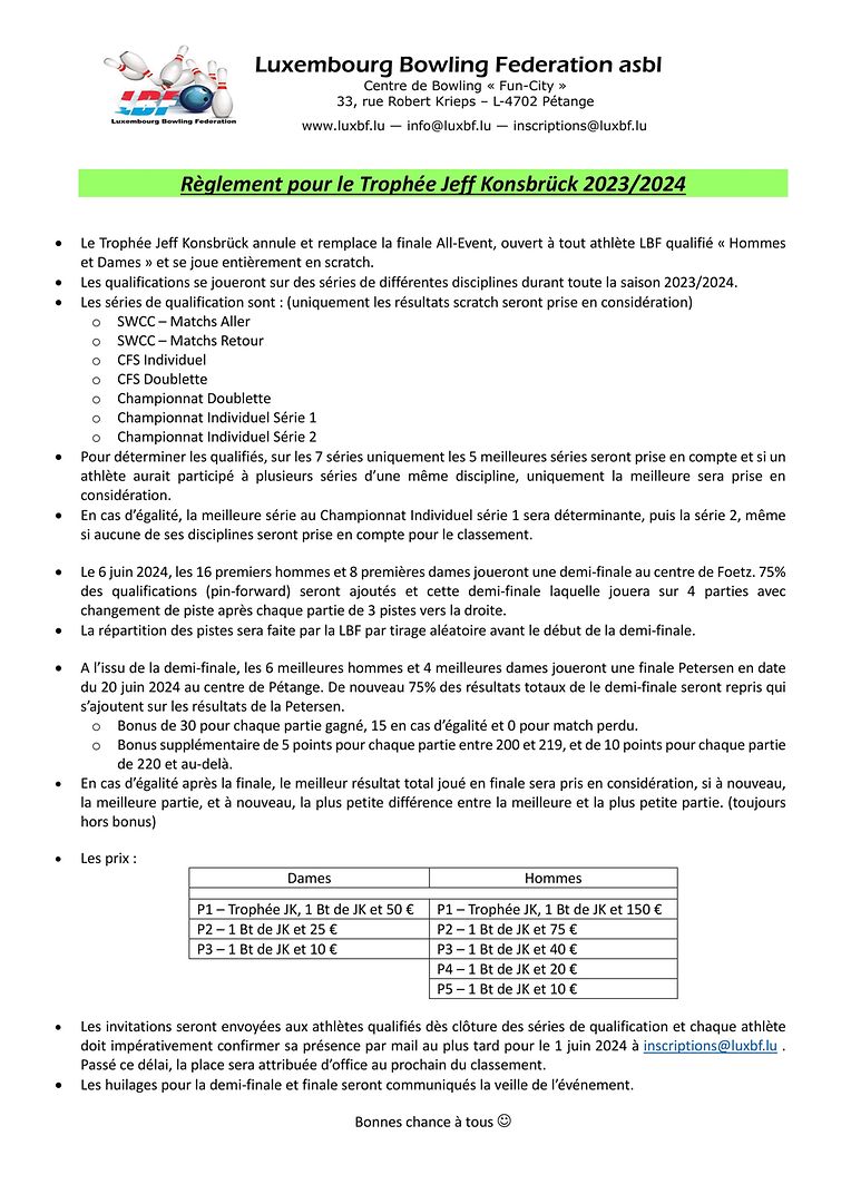 Reglement an Detailer fir den Trophée Jeff Konsbrück 2023/2024 wou iwert d'Saison aus enger 7'er Serie vun Disziplinnen di 5 bescht geholl gi fir sech fir d'Hallef-Finale ze qualifizéieren. Dono steet d'Finale u wou di 6 bescht LBF-Hären a 4 bescht LBF-Damen untrieden.
