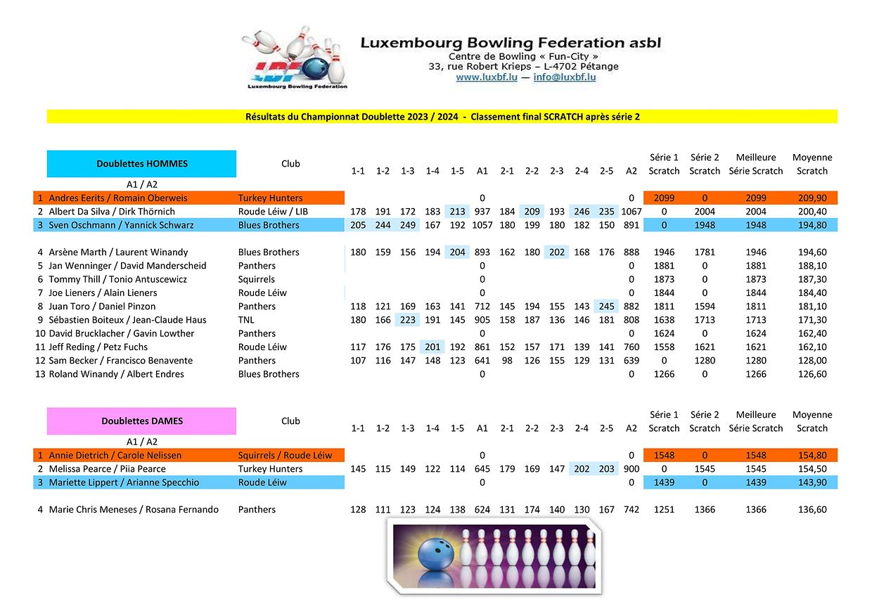Petingen LBF - Resultater vum Championnat Doublette 2023/2024 Luxembourg Bowling Federation 3 Bildergalerie Bitte scrollen Sie nach unten,um weitere Bilder zu sehen. Veröffentlicht am Donnerstag, 16. November 2023 um 23:49 Petingen, Luxemburg Resultater nom leschten Tour vum Doublette-Championnat 2023/2024 Weider Info'en op www.luxbf.lu Unpassenden Inhalt angeben Weitere Neuigkeiten von Luxembourg Bowling Federation > LBF - Tour 2 vum Championnat Doublette 2024/2025 16.12.24 Petingen LBF - Tour 4 vum SWCC 2024/2025 09.12.24 Petingen LBF - Tour 1 du Championnat Doublette 2024/2025 01.12.24 Petingen LBF - Resultater vum Fun-Turnéier 9 No-Tap 23.11.24 Petingen LBF - Tour 3 vum SWCC 2024/2025 18.11.24 Petingen