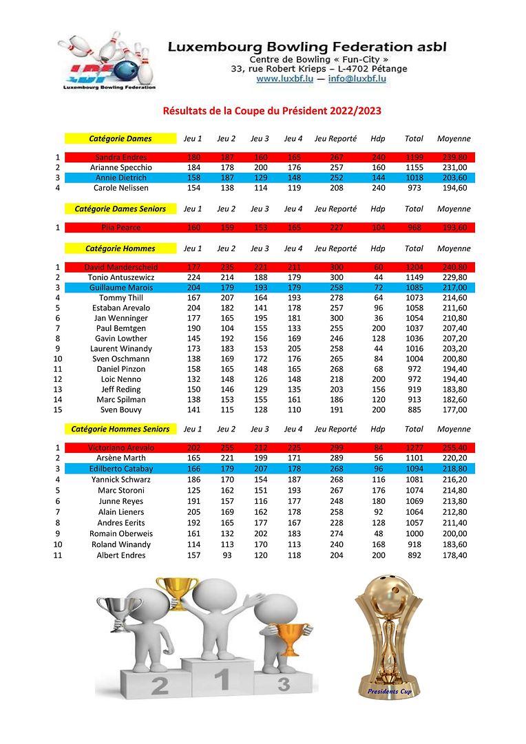 Petingen LBF - Resultater vun der Coupe du Président 2022/2023 Luxembourg Bowling Federation 2 Bildergalerie Bitte scrollen Sie nach unten,um weitere Bilder zu sehen. Veröffentlicht am Freitag, 9. Juni 2023 um 22:09 Petingen, Luxemburg Resultater vun der Coupe du Président 2022/2023. Weider Info'en op www.luxbf.lu Unpassenden Inhalt angeben Weitere Neuigkeiten von Luxembourg Bowling Federation > LBF - Tour 2 vum Championnat Doublette 2024/2025 16.12.24 Petingen LBF - Tour 4 vum SWCC 2024/2025 09.12.24 Petingen LBF - Tour 1 du Championnat Doublette 2024/2025 01.12.24 Petingen LBF - Resultater vum Fun-Turnéier 9 No-Tap 23.11.24 Petingen LBF - Tour 3 vum SWCC 2024/2025 18.11.24 Petingen
