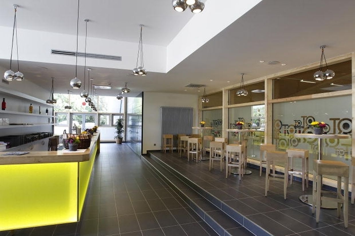 Im Innern sind im vorderen Teil zwölf Kegelsportbahnen und im hinteren Teil drei Tennisfelder, beides mit Tribünen, Umkleiden und technischen Lokalen eingerichtet. Im Erdgeschoss befindet sich ein Café, dessen Betreiber der Kegelsportverband ist.