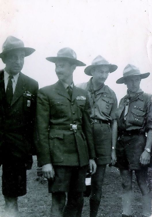 En 1957, S.A.R. le prince Jean, en sa qualité de chef scout du G.D.de Luxembourg, a visité le Jamboree de Sutton Coldfield en Angleterre en compagnie de M.Robert Schaffner ( à gauche). A cette occasion, il a été reçu par une délégation de scouts luxembourgeois.
