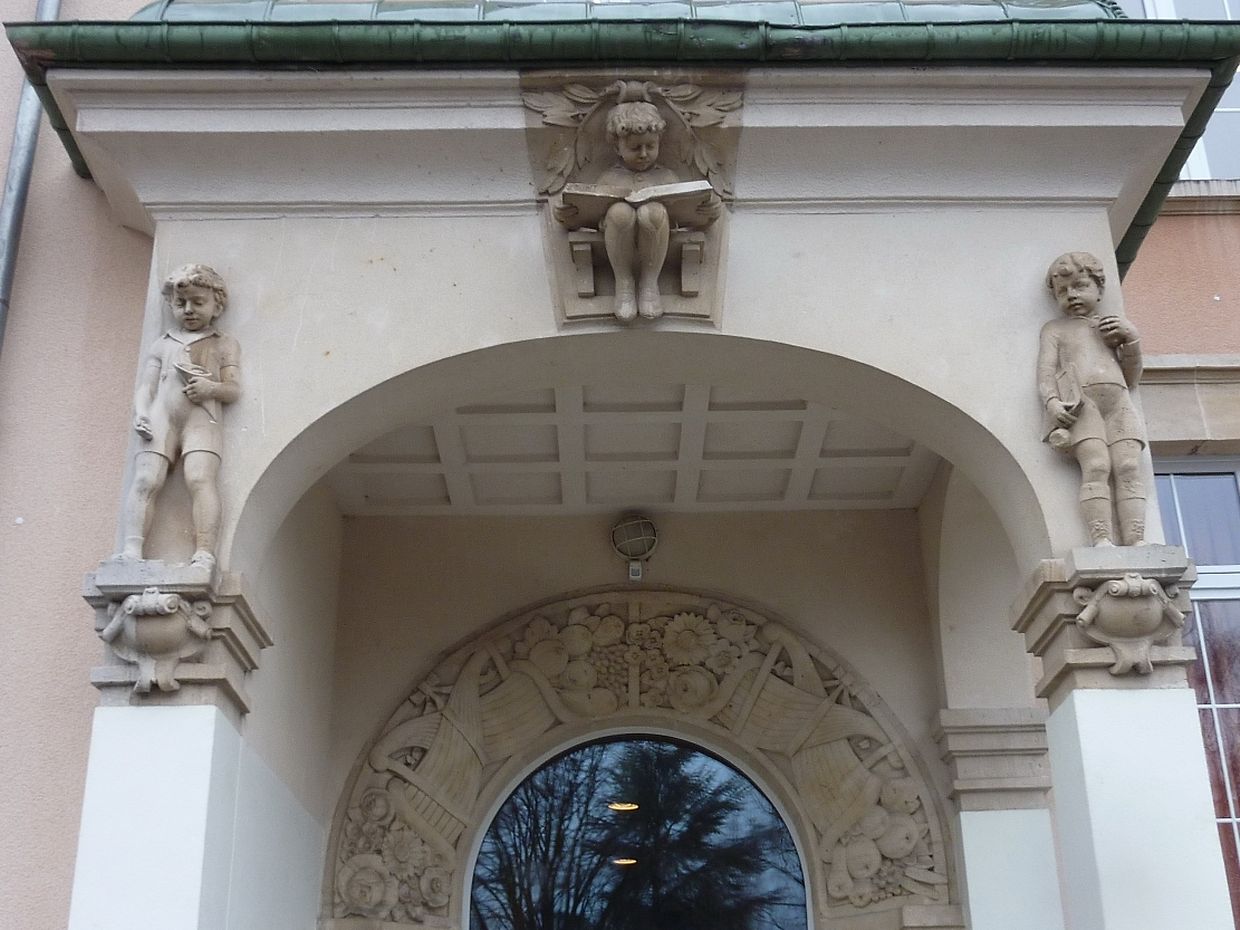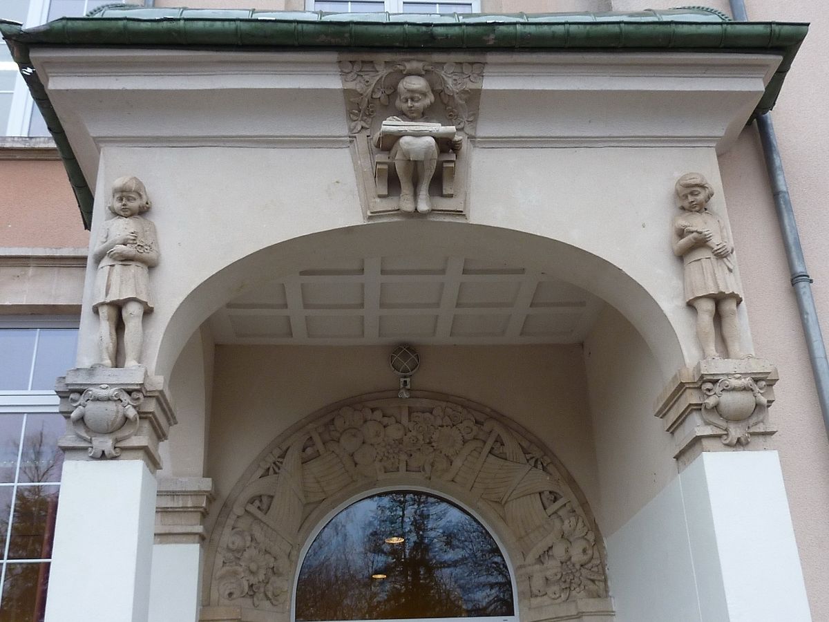 Bei näherem Hinsehen kann man auf den Bildern genau erkennen, dass, wie es zur damaligen Zeit üblich war, die Eingänge für die Mädchen und die Jungen strikt von einander getrennt waren.