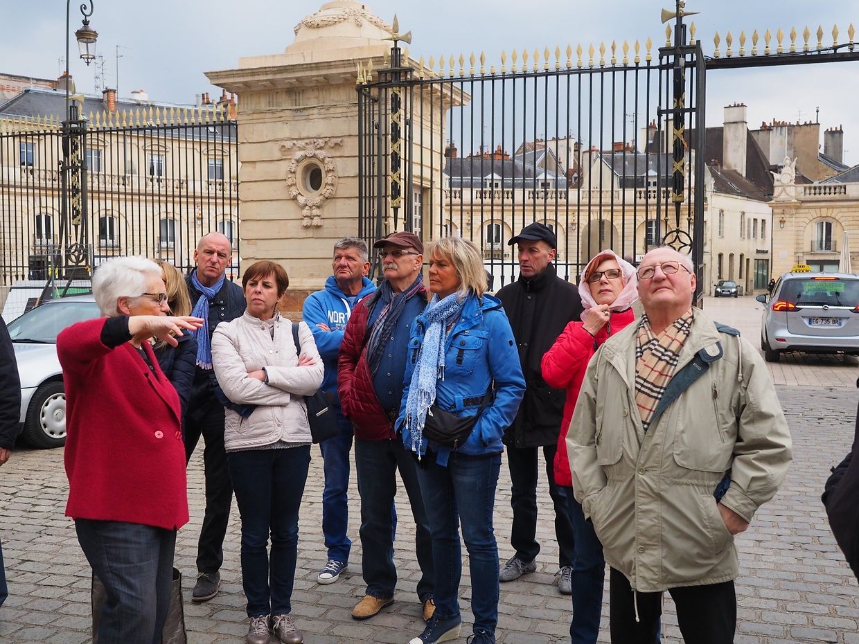 Nach einem Mittagessen im Restaurant « Les Marronniers d’Arc » in Arc-sur-Tille, erreichten die 26 Mitglieder und Mitgliederinnen der Amicale nachmittags bei herrlichem Wetter das Zentrum von Dijon. Ein Rundgang durch die schöne Altstadt mit ihren zahlreichen denkmalgeschützten Bauwerken führte die Gruppe durch die mittelalterlichen Gassen des Viertel Notre Dame zum Herzogenpalast. Grosse Bewunderung lösten die wunderschönen herrschaftlichen Bauten, und die grosse vom Ingenieurbüro Eiffel gebaute Markthalle aus.