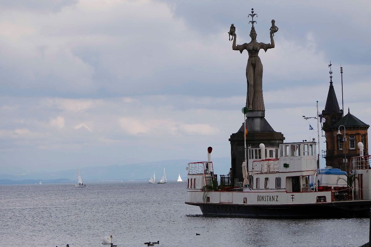 Am Sonntagvormitttag besichtigten wir bei einem geführten Stadtrundgang das schöne Konstanz. Nur wenig bekannt war die Tatsache, dass der Rhein durch den Bodensee fließt. Die Stadt am Bodensee blieb glücklicherweise in den Kriegen dieses Jahrhunderts und auch vorher von Zerstörungen verschont. Am Hafen steht die neun Meter hohe und 18 Tonnen schwere Figur der „Imperia.“ Die Statue dreht sich und trägt auf ihren Händen Figuren mit den Insignien der päpstlichen und kaiserlichen Macht. Der Künstler stellte mit dieser ironisch gemeinten Figur das turbulente und nicht immer sittengerechte Treiben des Papstkonzils anfangs des 15. Jahrhunderts dar. Das riesige Konzilgebäude am Hafen war damals die Tagungsstätte dieses Konzils, wo es nur um Macht und Einfluss ging.