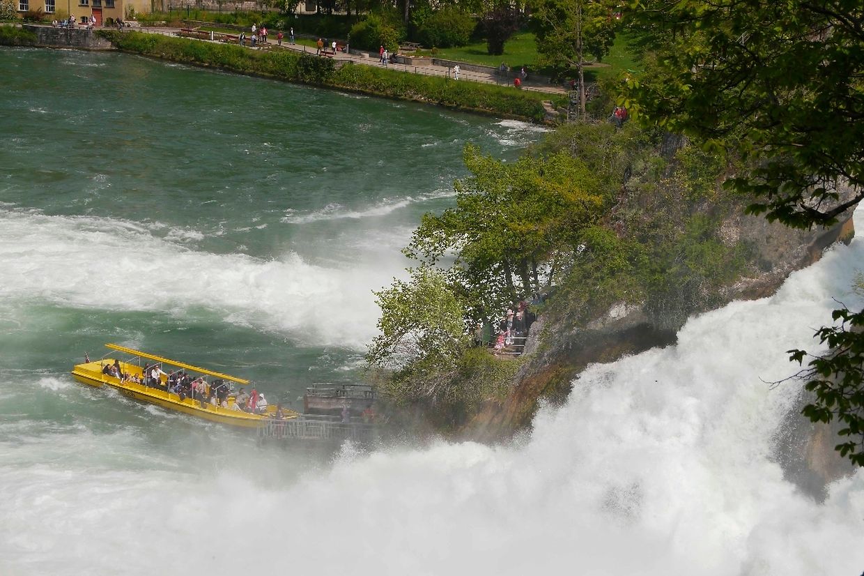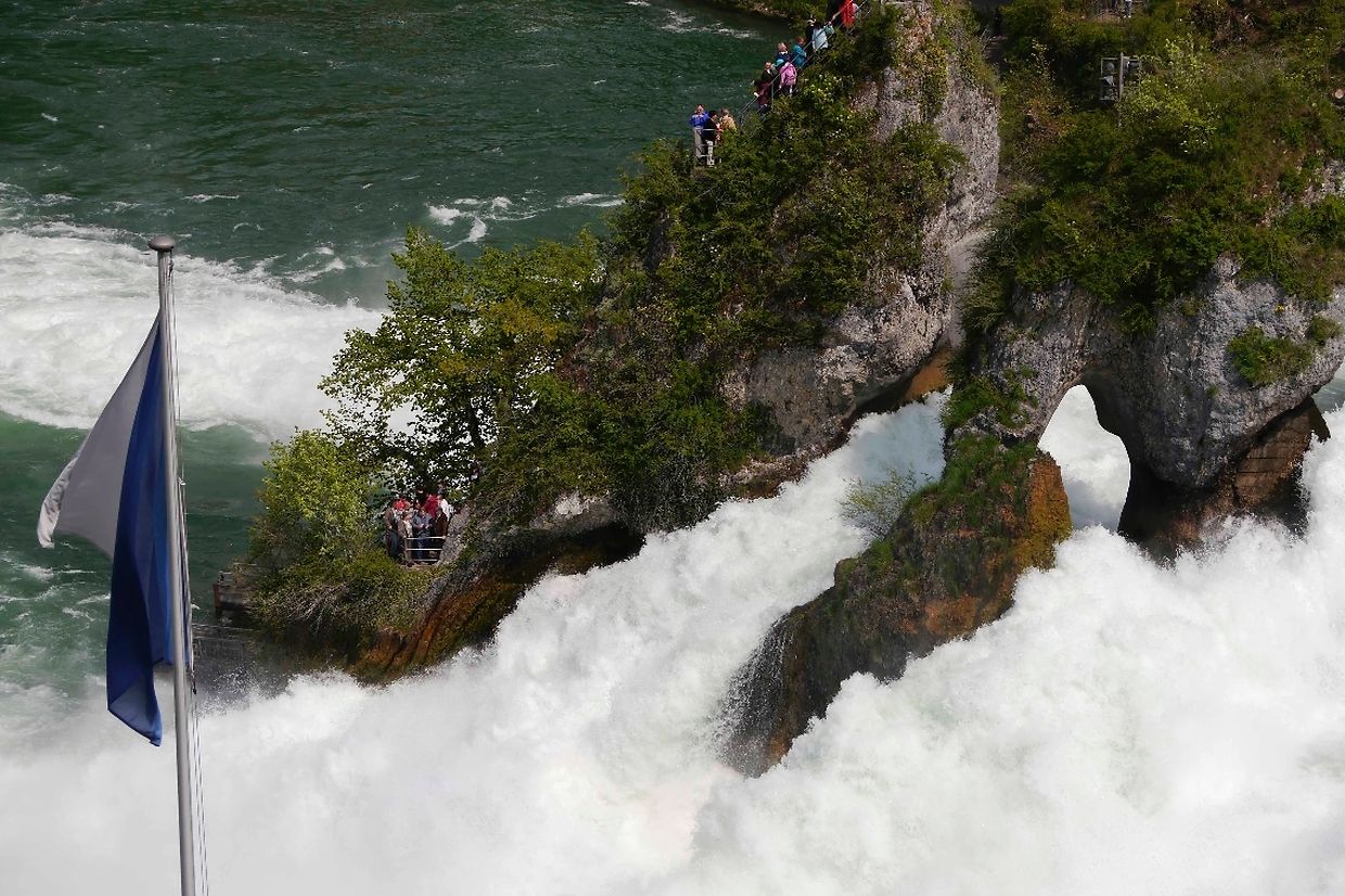 Am Montagvormittag besuchten wir den Rheinfall bei Schaffhausen. Dieser größte Wasserfall Europas bietet ein imponierendes Naturschauspiel. Auf 150 Meter Breite stürzt der vom Bodensee kommende Rhein aus 23 Metern Höhe über die Felsen. Hier schießen pro Sekunde unglaubliche 750000 Liter Wasser über die Felsklippen. Wir stiegen über steile Treppen nach unten und bestaunten den „The Rock“ genannten Felsen inmitten der tosenden Wassermassen. Für einige müde Teammitglieder war der Rückweg nach oben mit dem gläsernen Aufzug mit Blick auf den Wasserfall eine Wohltat. Nach rund zweistündigem Aufenthalt ging es per Bus zurück nach Luxemburg. Das ständige Nachfragen einiger Mitfahrer nach frisch geerntetem Spargel konnte glücklicherweise an dem einzigen Verkaufsstand abseits der Autobahn erledigt werden. Chauffeur Pascal wendete deshalb seinen überlangen Bus geschickt in einem schmalen Weg.