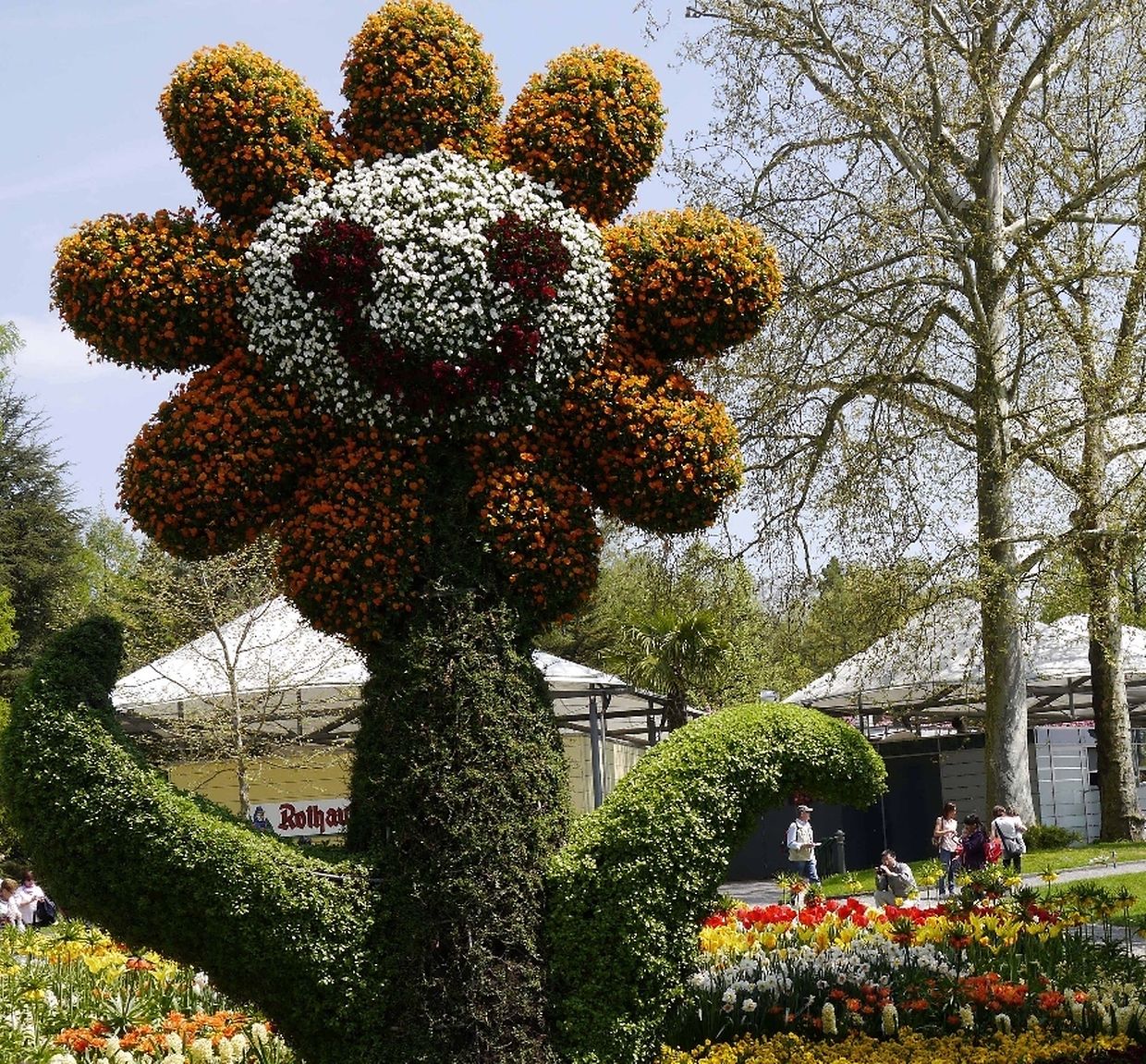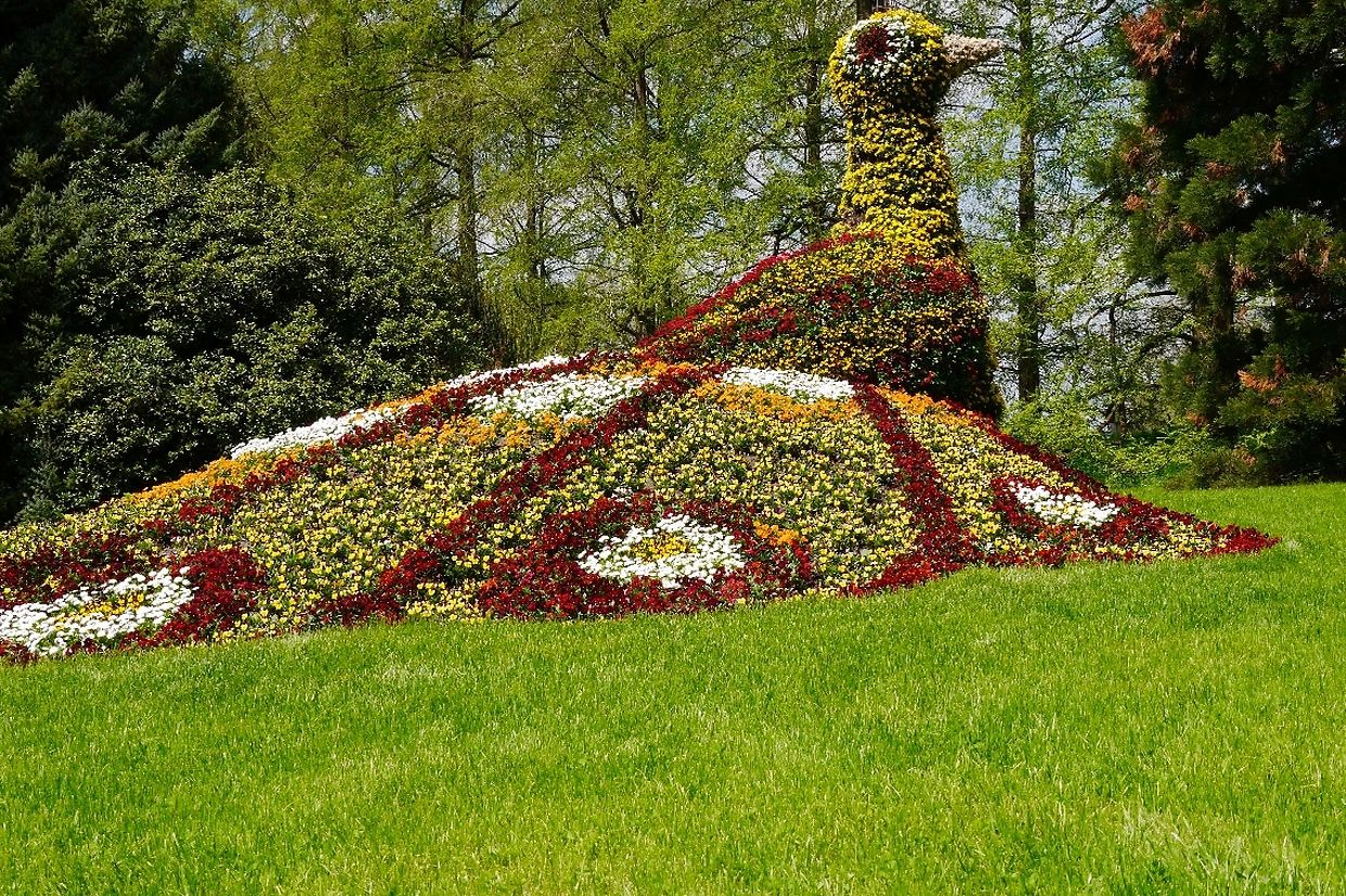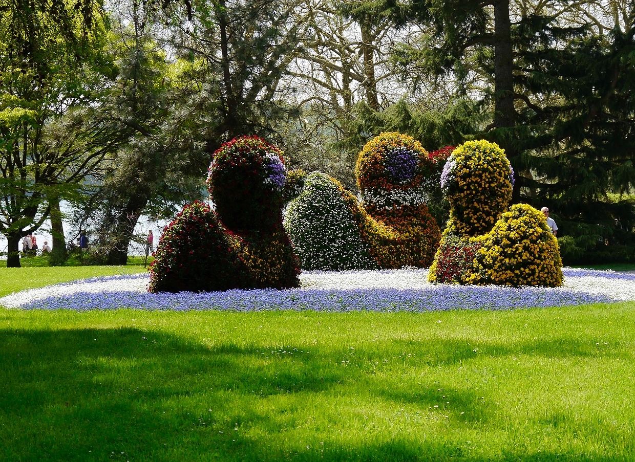 Am Sonntagnachmittag ging die Fahrt zur Blumeninsel Mainau mitten im Bodensee. Das herrliche Wetter und der freie Sonntag hatten zigtausend Besucher dorthin gelockt. Auf dem riesigen Inselgelände mit seinen zahlreichen Attraktionen kann man einen ganzen Tag verbringen. Am sehenswertesteten sind das Schmetterlingshaus, der Baumgarten, das Palmenhaus mit wunderschönen Orchideen, die vielen Blumenskulpturen und das Barockschloss. Leider stand der Rosengarten noch nicht in Blüte, aber die bunten Frühlingsblumen der vielfältigen Arten waren begehrte Fotoobjekte. Nützlich waren die vielen Bänke, denn durch das Besichtigen der Blumenrabatte und Hallen hatte doch der eine oder andere müde Beine bekommen.