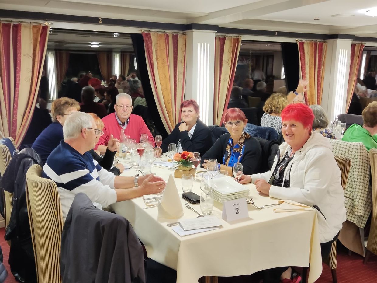 Bei einem hervorragenden «Lëtzebuerger Menu» an Bord des Schiffes, konnten so in geselliger Runde viele Anekdoten und Erinnerungen aufgefrischt werden.
