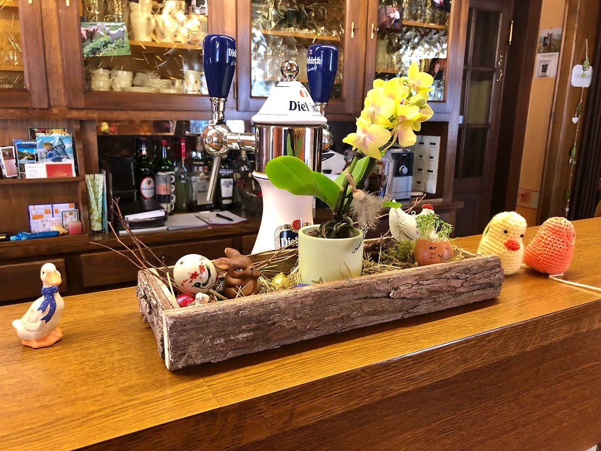Pintsch Basteleien als Osterdeko am Tresen Pol Sassel 2 Bildergalerie Bitte scrollen Sie nach unten,um weitere Bilder zu sehen. Veröffentlicht am Sonntag, 17. April 2022 um 12:26 Pintsch, Kiischpelt, Luxemburg Mit schönen Osterdekorationen hat die Wirtin des Café "Beim Schräiner" in Pintsch (Gemeinde Kiischpelt, eh. Wilwewiltz) ihren Tresen geschmückt. Unpassenden Inhalt angeben Weitere Neuigkeiten von Pol Sassel > Von Asselborn über Fünfbrunnen nach Ulflingen 22.12.25 Wintger Am Daal von der Béiwenerbaach 22.12.25 Boeven D’Kierch vun Harel am Dezember 2025 22.12.25 Harlingen Sonntagsmesse in Asselborn: 21.12.2025 um 11 H 21.12.25 Asselborn Am Bierig 19.12.25 Oberwampach