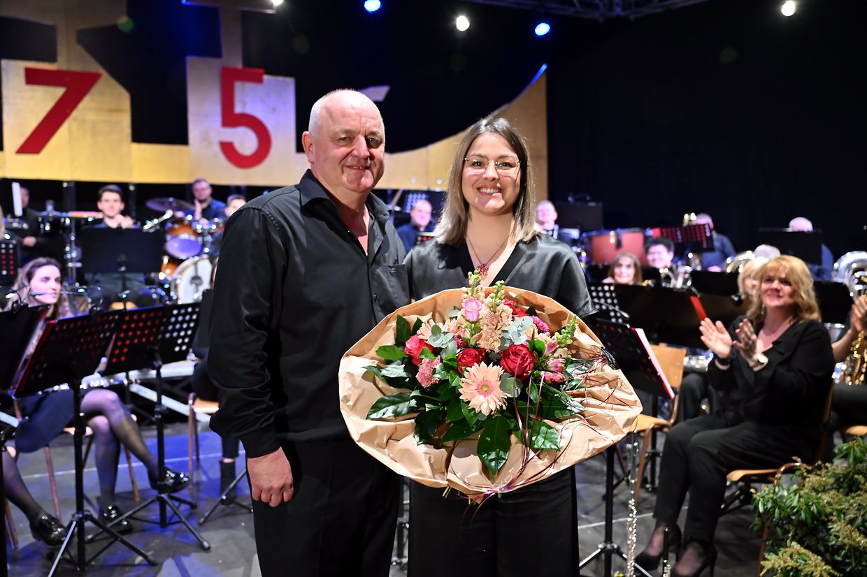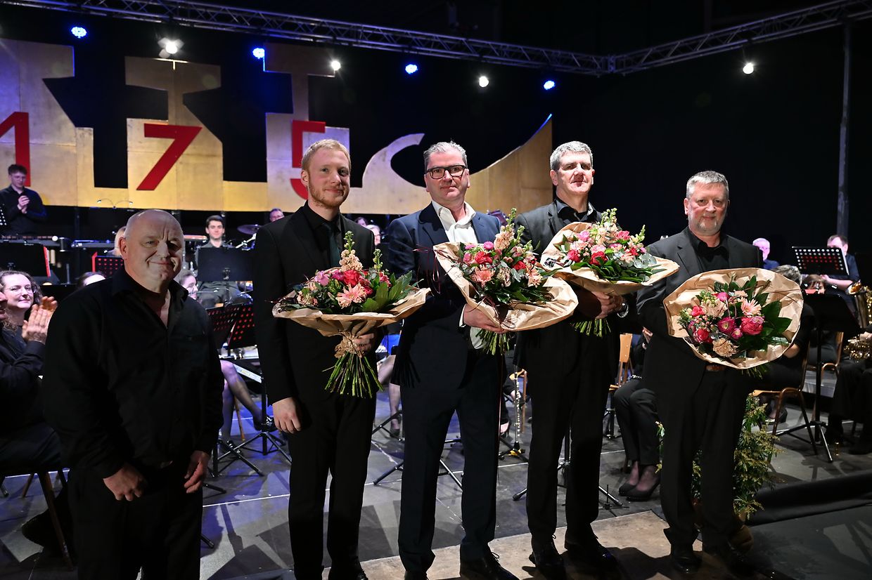 Préizerdaul: Eng schéin gerëscht Sportshal mat engem Bühnendekor, den am Hannergrond mam Logo vun enger Trompette mat groussen Zifferen, 175 Joer, direkt an d’Ae gestach huet, war och di richtig Plaatz zu Platen fir di Préizerdauler Musik fir hiren Jubiläums- Galaconcert 2024 ze presentéieren. Mat iwer 200 Musikfrënn war dest Evenement mat kulturellem Charakter am Préizerdaul och e groussen Erfolleg. Hiren dynamischen Chef Christophe Terver hat zesummen mam Organisatiounscomité e flotten Programm fir desen 22. Galaconcert zesummegestallt, den och vun engem dankbarem Publikum mat villem Applaus honoréiert gouf. Zum Optakt vum éischten Deel wéi vun der Moderatorin vum Owend, Laura Loes- Weis, ugekënnegt gouf , koum „Across the Northern Sky“ vum Michael Swenney zur Opféierung. Direkt duerno war et „ La Belle au Bois Dormant“ vum Peter l. Tchaikowsky- arr. Silvio Caligaris. Mat „ the High School Cadets“ vum J.P. Sousa hat de fréieren Dirigent Patrick Coljon, d‘Éier dest Musikstéck ze dirigéieren. Mat „Sway“ vum Pablo Beltram Ruiz-arr: Michael Brown huet d’Solistin Patricia Hilger sengt gesanglicht Talent och voll a ganz zum Ausdrock bruecht grad esou wi och méi zum Schluss vum Concert, di schéin Melodie „Feeling good“, arrangéiert vum Giancarlo Gazzini. Mat „ Prelude et Mazurka“ arrangéiert vum Yo Kitano gefollegt vum Musikstéck“ Mt. Everest“ vum Rossano Galante dat ënnert der Leedung vum fréieren Chef Dominique Fonck dirigéiert gouf huet zum éischten Deel vum Owend gehéiert. Nach virun der Paus war et um Fernand Muller, President vum Organisatiounscomité, den ausféierlich op d’Geschicht an op d’Entstehung vun der Préizerdauler Musik am Joer 1848 agaangen ass an och houffrig war dat di Préizerdauler Musik an all der Zäit mat engagéierten Musikanten, Dirigenten a Comitésleit bis haut mat Stolz konnt viru gefuert gin. All denen di duerzou beigedroen hun, ass en haut och zu groussem Dank verpflicht. Grad esou denen véier Dirigenten, di an de läschten Joeren d’Musik dirigéiert hun gehéiert Unerkennung an en oprichtigen Merci. „Mat „Pacific Dream“ vum Jacob de Haan, The „Song an Dance“ vum Andrée Waignein ënnert der Direktioun vum Fernand Muller, „One Seven Five“ , komponéiert vum aktuellen Dirigent Christophe Terver hun zu den Highlights vum zweeten Deel gehéiert. Mat „ Mambo Corazon“ vum Carlo Pucci war et de Schluss niewt verschidden vum Publikum gefouerten Zugaben vum Gala 2024 am Préizerdaul. Natirlich war et fir de President Franz Hilger och eng besonnesch Éier fir niewent de villen Leit , Éiergäscht, Sponsoren an Donnateuren vun den Musikstécker, dem Organisatiounscomité, der Gemeng, alle Musikanten an Dirigenten fir hir Presenz, Ënnerstëtzung an Engagement, säin haerzliche Merci auszedrëcken. Wéi dat sech op enger Gebuertsdagsfeier och gehéiert ass de groussen Gebuertsdagskuch mat engem kräftigen „Happy Birthday“ presentéiert gin, den jiddereen sech och gut schmaache geloos guet. Bei flotten Zesummesin an dem Optrëtt vun „After Band: Radio Station, huet dess Jubiläumsfeier „175 Préizerdauler Musik“ och sengt würdigt Ënn fond. (CR (Fotoen: Charles Reiser)