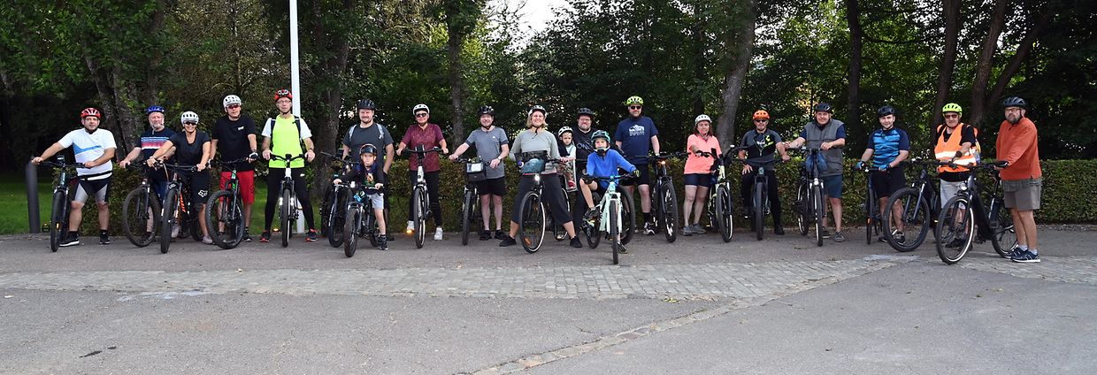 Am Kader vun der Mobilitéitswoch am Kanton Réiden waren vill Vëlosfrënn beim Start um Parking bei der Fabrik zu Platen derbéi. No der Begréissung vum Buergermeeschter Marc Gergen, den och jidderengem Merci gesoot huet fir d'Matmaachen, huet hien duerno den flotten Vëlotour och presentéiert an invitéiert fir zum Schluss vun deser Randonnée de Patt offeréiert vun der Gemeng zesummen ze genéissen. (CR) (Foto: Charles Reiser)