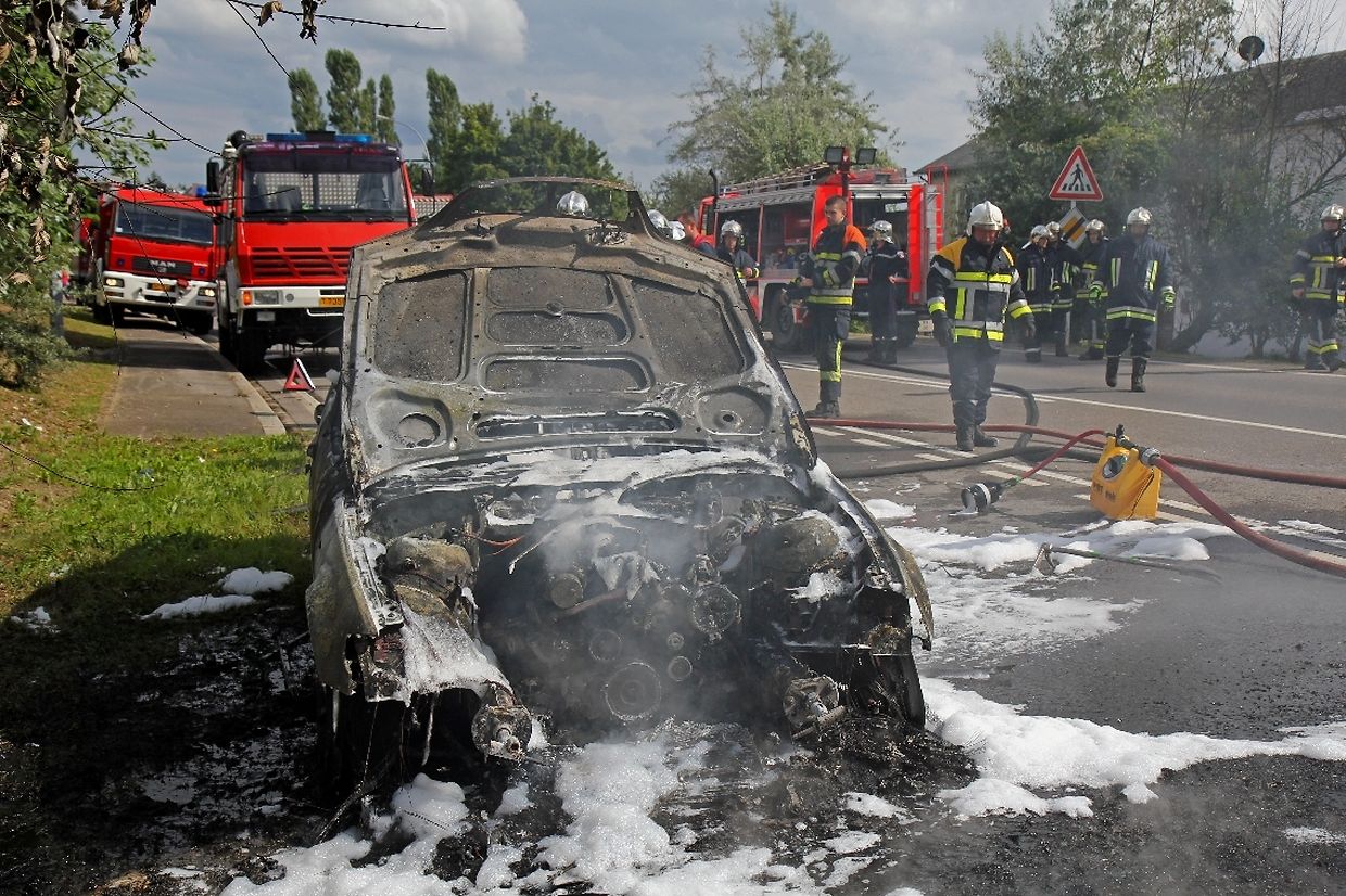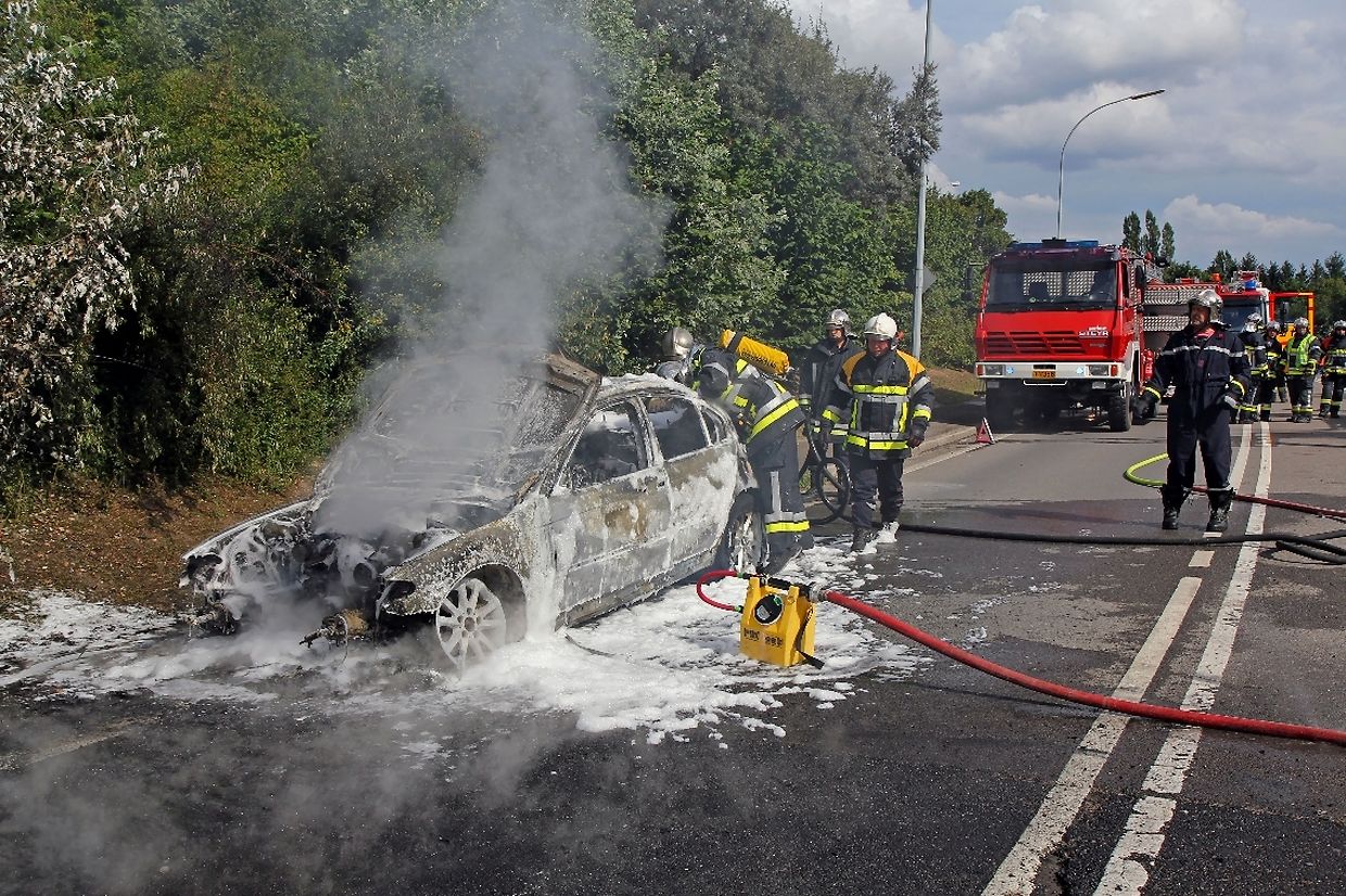 Der Fahrer, der seinen Wagen von Potaschberg in Richtung Weckergrund steuerte, bemerkte während der Fahrt nur wenige hundert Meter nach dem Kreisverkehr, dass aus seinem Personenwagen im Motorraum plötzlich Rauch aufstieg und hielt an. Ihm gelang es noch, ein Kind aus dem Wagen zu bringen, ehe dieser voll in Brand geriet. Mit schwerem Atemschutz ausgerüstet mussten die Rettungskräfte gegen den Brand vor gehen, konnten jedoch nicht mehr verhindern, dass der Wagen komplett ein Raub der Flammen wurde. Auch ein Brand in der angrenzenden Böschung konnte schnell unter Kontrolle gebracht werden. Während einer halben Stunde musste der Verkehr auf der Nationalstrasse 1 wegen der Löscharbeiten komplett gesperrt werden. Am Wagen entstand Totalschaden. Glücklicherweise wurde jedoch niemand verletzt.