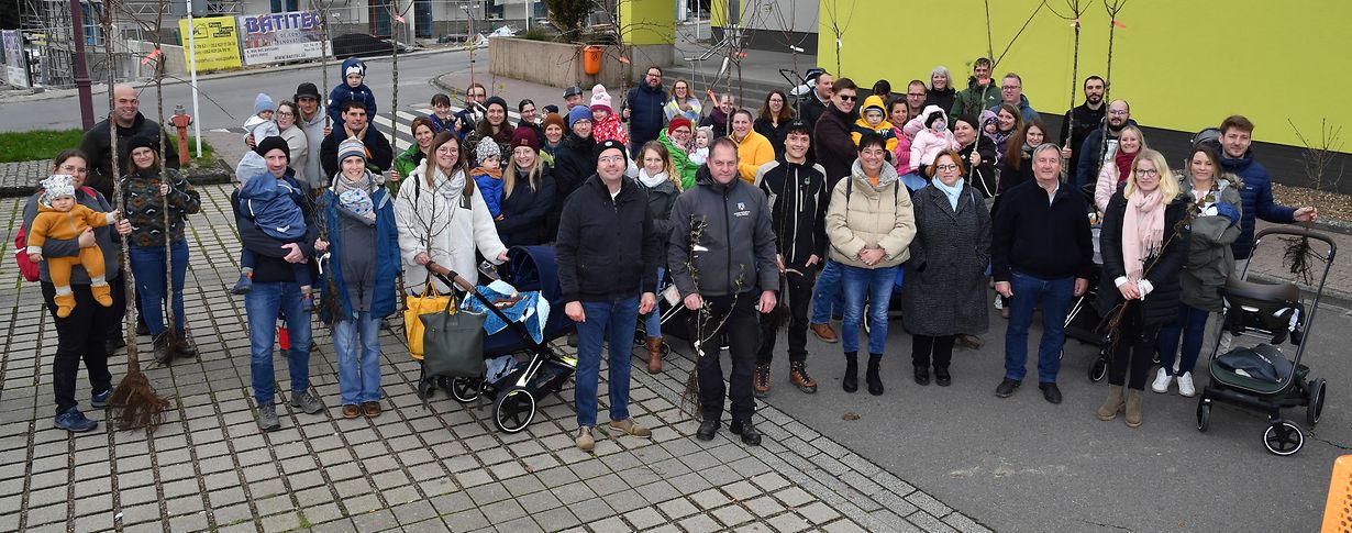 Rammerich: Am Kader vum Dag vum Bam héi zu Lëtzebuerg an am Verlaaf vun enger klenger Feier beim Kulturzenter zu Rammerech, hun iwert 30 néigebueren Kanner di tëschent dem 1. Januar 2021 an dem 30. September 2022 op d’Welt komm sin, e Bâm no hirer Wiel vun der Gemengeverwaltung, geschenkt kritt. Wi d’Schëffin Myriam Binck agaangs vermierkt huet, ass d’Geburt vun engem Kand mit ganz vill Bräich verbonnen an een vun deenen ass planzen vun engem Bam als Zeechen vun engem neie Liewen. Esou kann een vergläichen dat genee wi e Bam , engt Kand vill Léift, Gedold a Pfleg brauch an dat engt vun de villen Rezepter ass, fir Friichten ze droen. Nom Wonsch dat planzen vun all âm vill Spaass mëcht a fir d’Kanner eng schéin Erënnerung op hirem Liewenswee bléiwt. Zesummen gouf dunn symbolisch fir all Kand eng Hieländerheck geplanzt. Och den Philippe Goeres als Vertrieder vun der anf huet op d’Wichtigkeet vum Bam fir Mënsch an Natur higewissen. Mat enger deftiger Zopp a bei engem gudde Patt am Kulturzenter huet dess Bâmfeier hiren würdigen Ofschloss fond. (CR) (Fotoen: Charel Reiser)