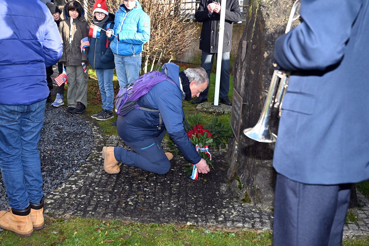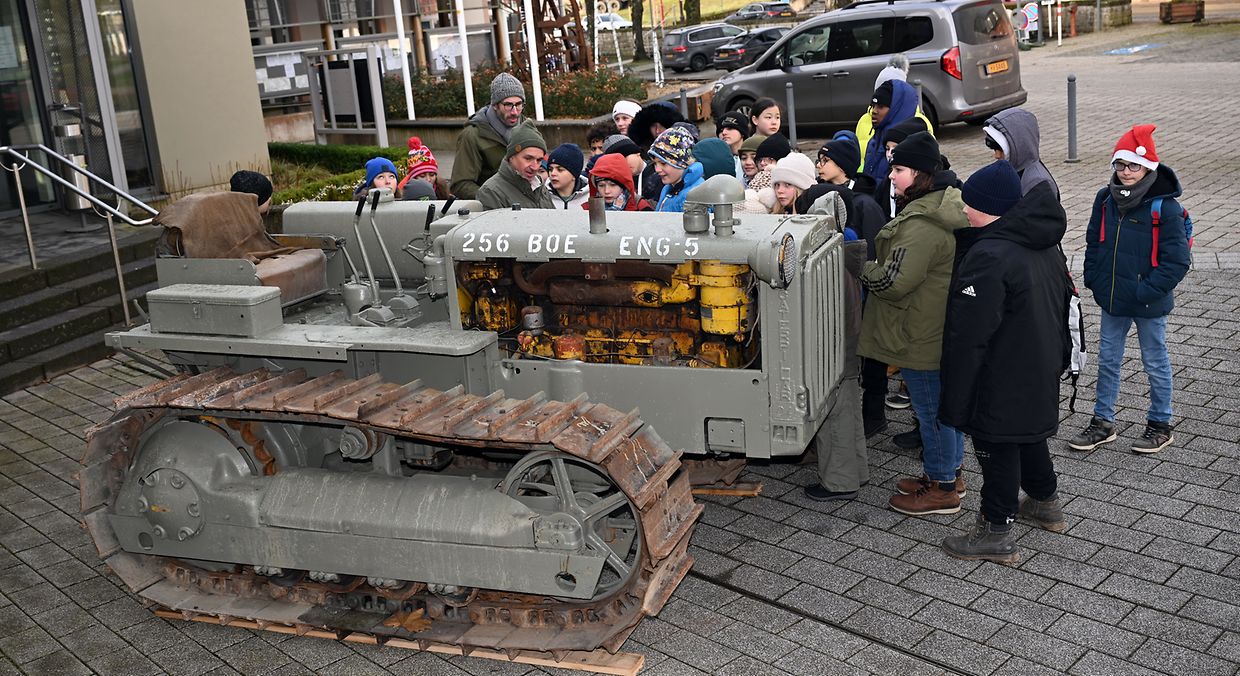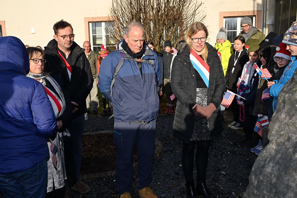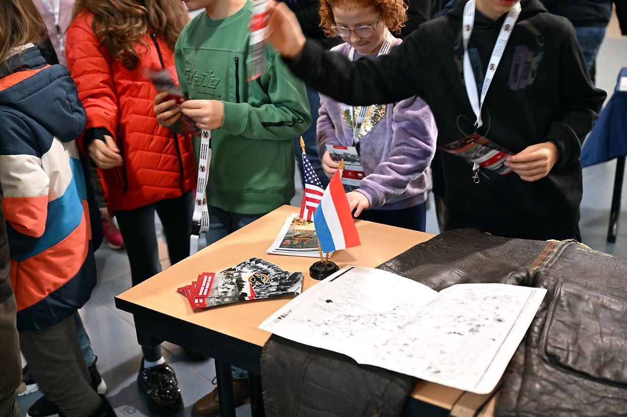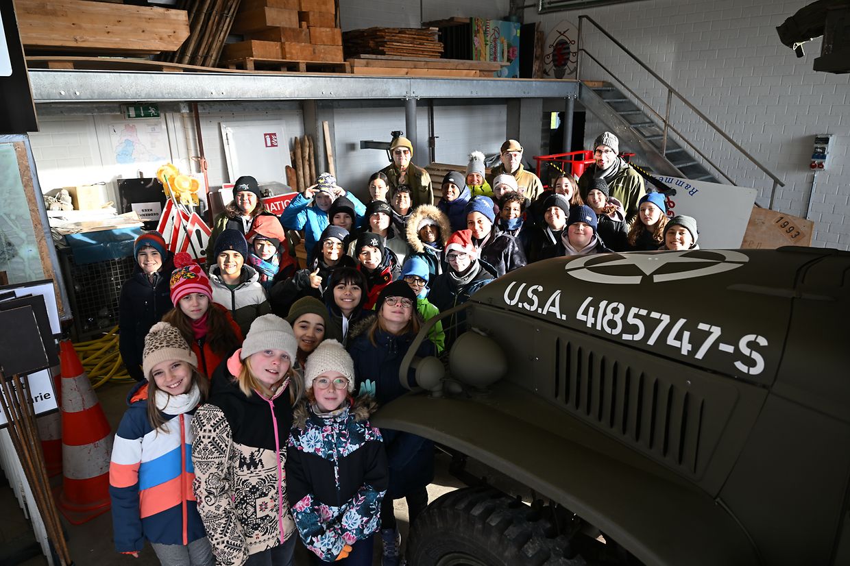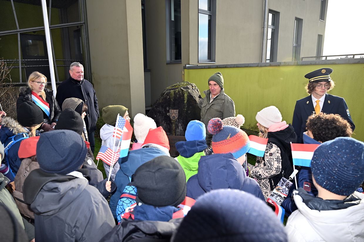 Dat 5.an dat 6. Schouljoer mat hiren Enseignants, aus der Kietschder Schoul, haten d'Geleeënheet fir am Kader vun engem Infodag mat Virféierungen, Ausstellungen an enger Gedenkzeremonie beim Denkmal zu Rammerich un d'Befreiung virun 80 Joer vun der Ardenneroffensiv erënnert ze gin. Ganz interessant war och den Interview mam Här Andy King, op der Gemeng mat de Schoulkanner, dem säi Papp aktiv bei der Befreiung vun der Uertschaft Rammerich mat gekämpft huet. Dobäi huet de Schëfferôt dem Här Andy King engt interessant Buch, als Kado, iwerreecht. (CR) F(Fotoen: Charles Reiser)