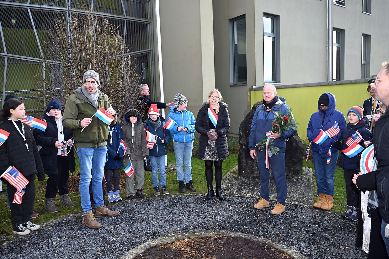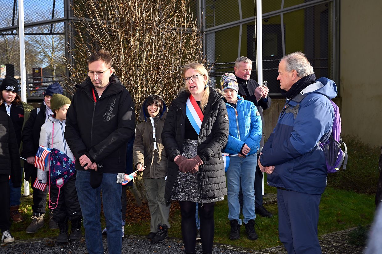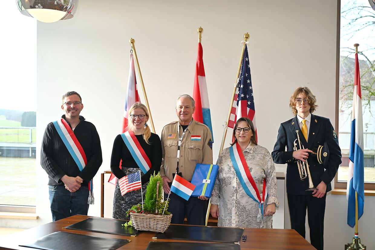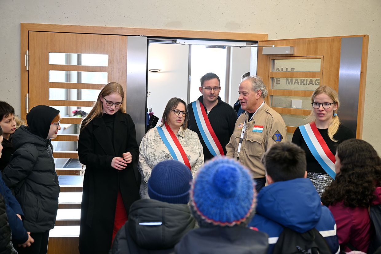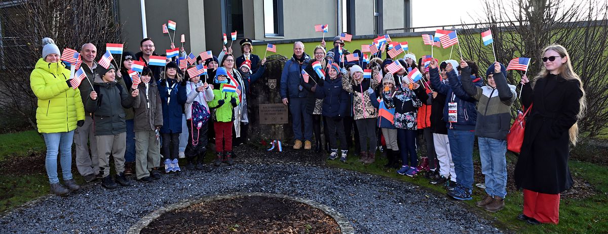 Dat 5.an dat 6. Schouljoer mat hiren Enseignants, aus der Kietschder Schoul, haten d'Geleeënheet fir am Kader vun engem Infodag mat Virféierungen, Ausstellungen an enger Gedenkzeremonie beim Denkmal zu Rammerich un d'Befreiung virun 80 Joer vun der Ardenneroffensiv erënnert ze gin. Ganz interessant war och den Interview mam Här Andy King, op der Gemeng mat de Schoulkanner, dem säi Papp aktiv bei der Befreiung vun der Uertschaft Rammerich mat gekämpft huet. Dobäi huet de Schëfferôt dem Här Andy King engt interessant Buch, als Kado, iwerreecht. (CR) F(Fotoen: Charles Reiser)