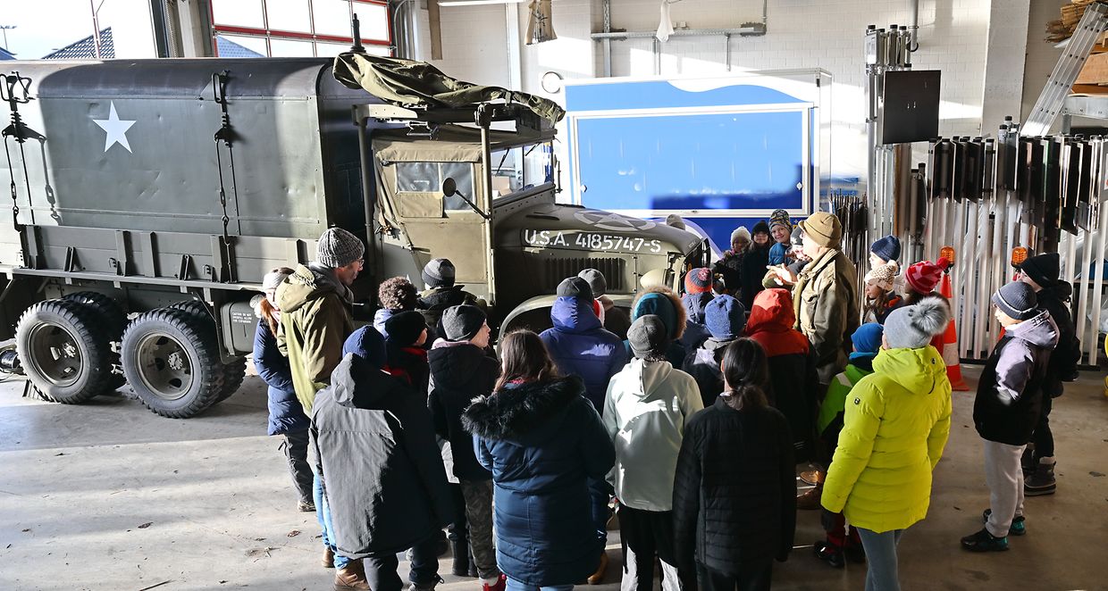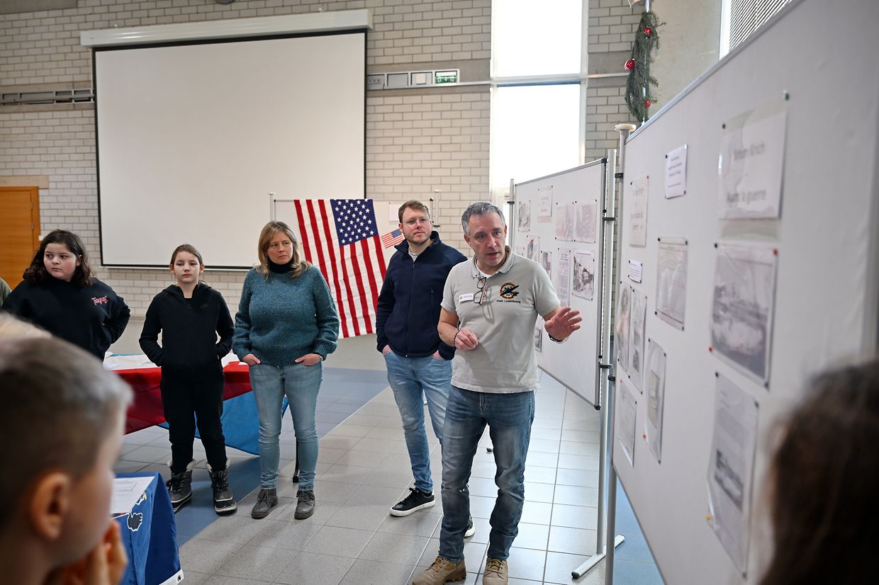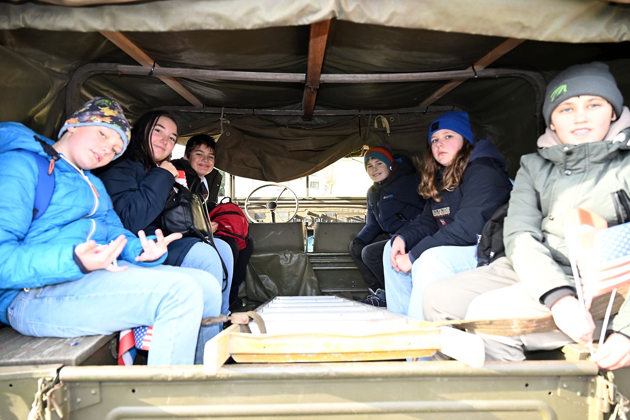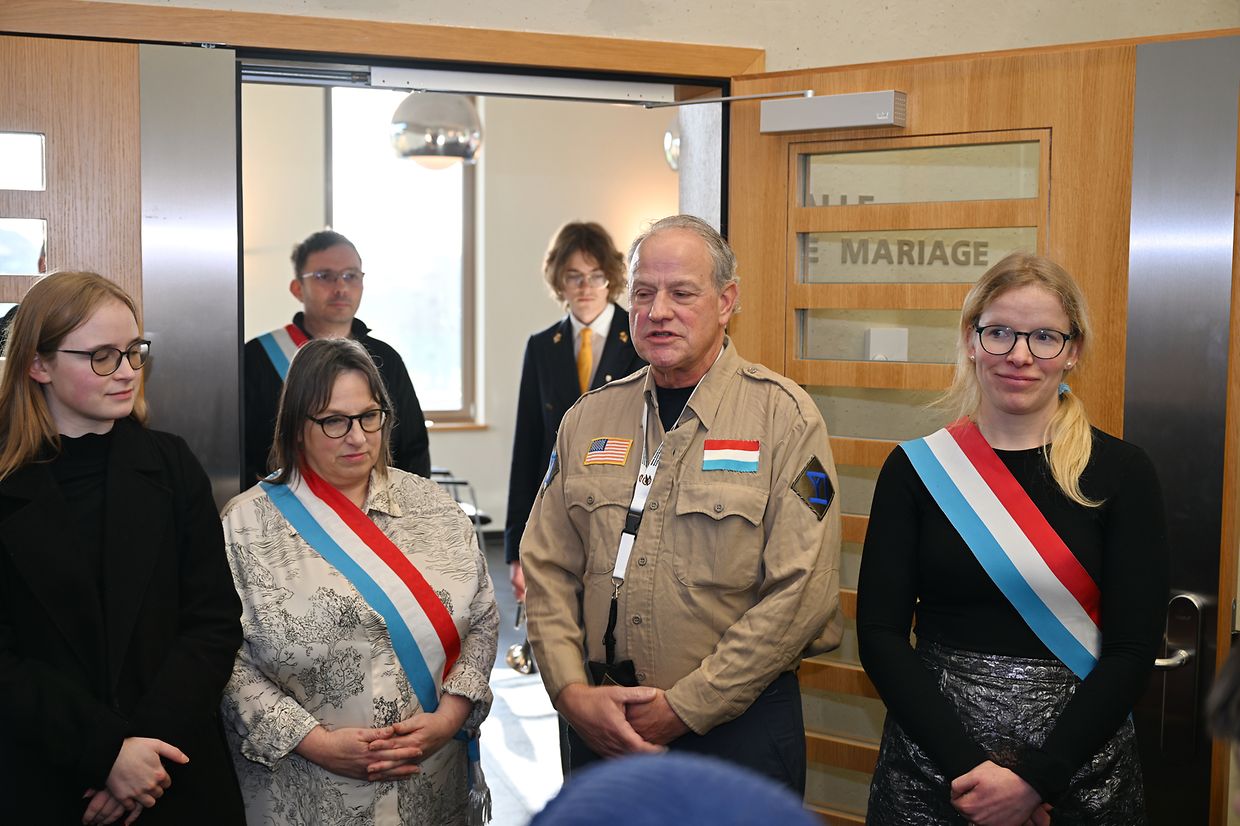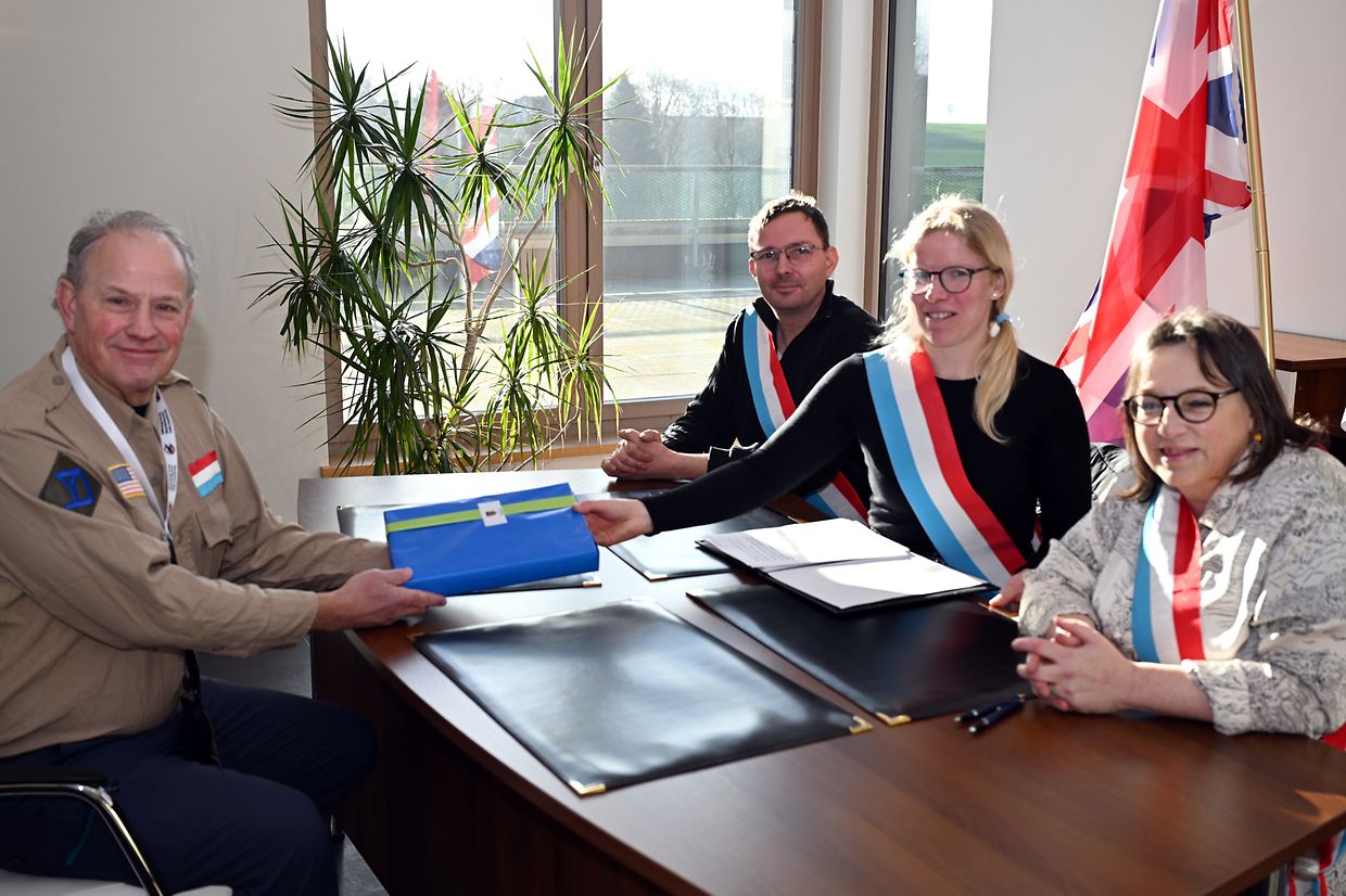 Dat 5.an dat 6. Schouljoer mat hiren Enseignants, aus der Kietschder Schoul, haten d'Geleeënheet fir am Kader vun engem Infodag mat Virféierungen, Ausstellungen an enger Gedenkzeremonie beim Denkmal zu Rammerich un d'Befreiung virun 80 Joer vun der Ardenneroffensiv erënnert ze gin. Ganz interessant war och den Interview mam Här Andy King, op der Gemeng mat de Schoulkanner, dem säi Papp aktiv bei der Befreiung vun der Uertschaft Rammerich mat gekämpft huet. Dobäi huet de Schëfferôt dem Här Andy King engt interessant Buch, als Kado, iwerreecht. (CR) F(Fotoen: Charles Reiser)