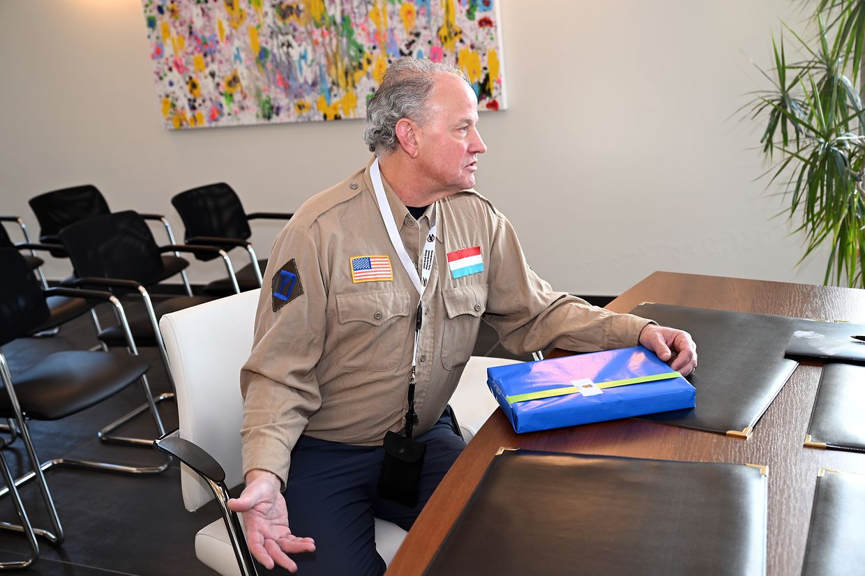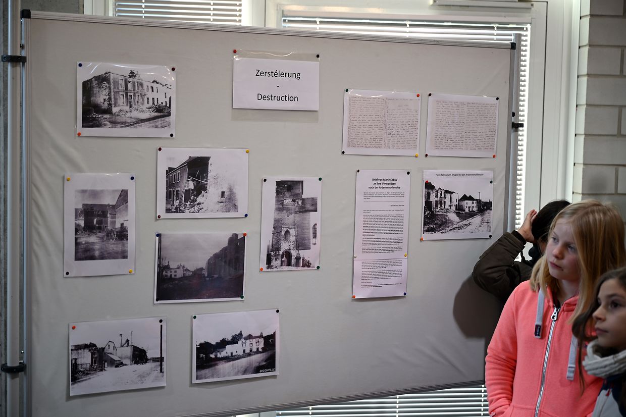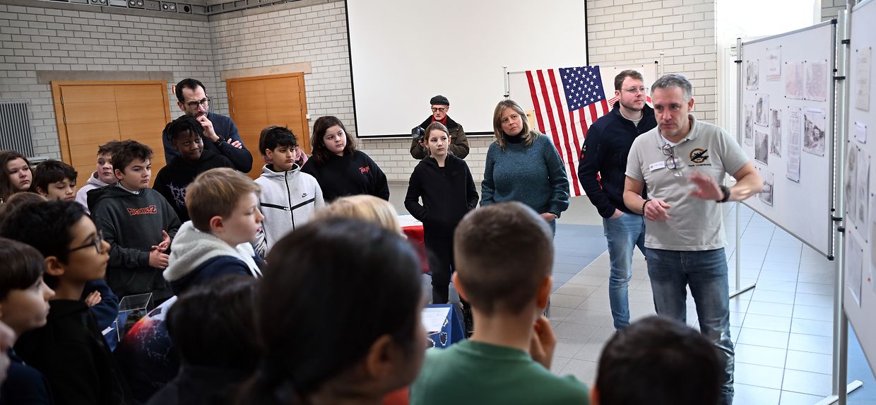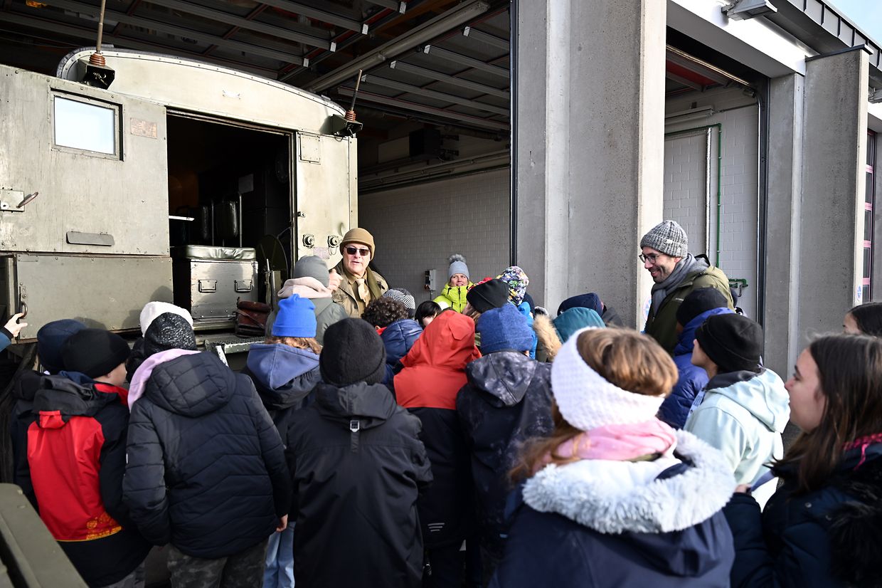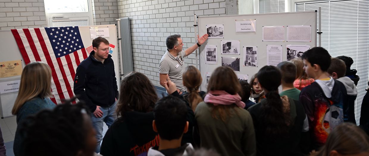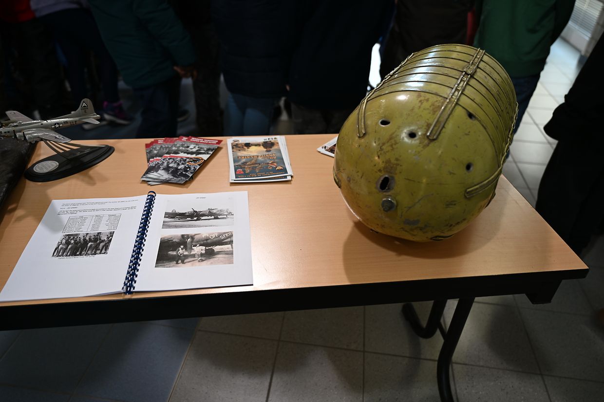 Dat 5.an dat 6. Schouljoer mat hiren Enseignants, aus der Kietschder Schoul, haten d'Geleeënheet fir am Kader vun engem Infodag mat Virféierungen, Ausstellungen an enger Gedenkzeremonie beim Denkmal zu Rammerich un d'Befreiung virun 80 Joer vun der Ardenneroffensiv erënnert ze gin. Ganz interessant war och den Interview mam Här Andy King, op der Gemeng mat de Schoulkanner, dem säi Papp aktiv bei der Befreiung vun der Uertschaft Rammerich mat gekämpft huet. Dobäi huet de Schëfferôt dem Här Andy King engt interessant Buch, als Kado, iwerreecht. (CR) F(Fotoen: Charles Reiser)
