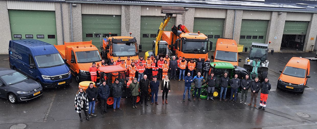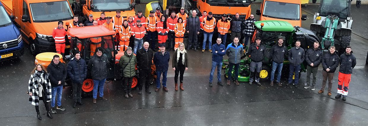 Rammerich: Wann een wëll gut Arbecht machen, muss een och gut an optimalt Geschier hun ! Dat waren d’Wierder vun der Schëffin Myriam Binck bei der offizieller Iwergab vum neie Fuerpark, den no an no zum Wuel vun alle Matbierger an der Gemeng Rammerich ugeschaaft gin ass. Zu deser klenger Feier an der Wierkstaadt um Riesenhaff konnt d’Myriam Binck niewt de Vertrieder vun de verschidde Firmaen, och d’Personal vum Technischen Service haerzlich Wëllkomm heeschen, déi och am Laaf vum Joer mat der néidiger Schaff- a Sëcherheetskleedung konnten ausgerëscht gin. Bei engem gudde Maufel gouf op eng weider gudd Zesummenarbicht mat allen Instanzen higewissen. (CR) (Fotoen: Charel Reiser)
