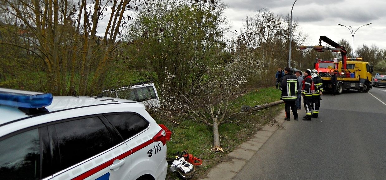 Den 08 Abrëll goufen dei Ehlenger Pompjeeen geint 15:23 op d'Landstroos vun Reckeng op Dippech-Gare geruf. Kuerz hannert dem Rondpoint Reckeng wuar eng Camionette vun der Stroos ofkomm, huet en klengen Bam ze paacken kritt an ass am Gruew an den Hecken un d'Haalen komm. Fir dass d'Depanneuse d'Camionette konnt biergen, hun d'Pompjeeen missen en puer deck Aescht vun der Heck mat der Motosee ewechschneiden. Natierlech hun sie och d'Asaatzplaatz ofgesechert an gebotzt. Alles an allem wuaren se während enger Stonn mat 6 Mann, dem TLF 2000, GW-S an KDOW op der Plaatz. Präsent wuaren ausserdem 2 Depanneusen, eng Patrull vun der Police Grand-Ducale, C.I. Esch/Uelzecht an d'Ponts et Chaussées.