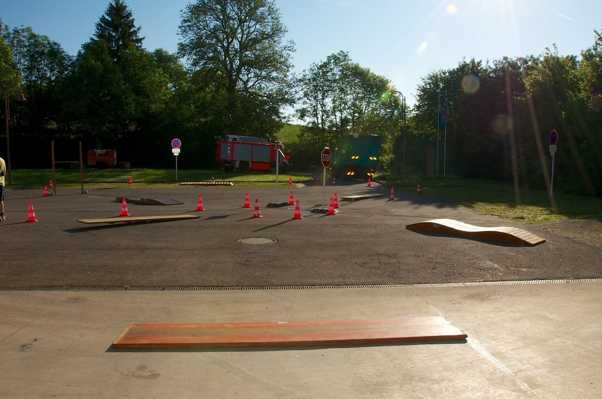 Donieft gouf och e Geschécklechkeetsparcours opgeriicht. Hei sinn d’Schüler beim Pompjeesbau e Parcours ofgefuer an hu verschidden Hindernisser misse bewältegen.