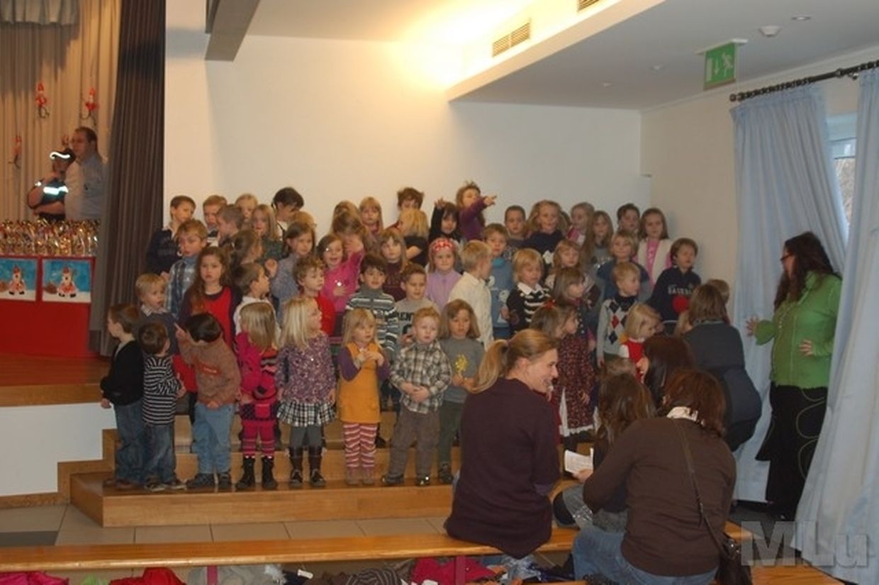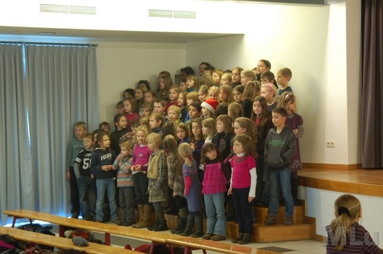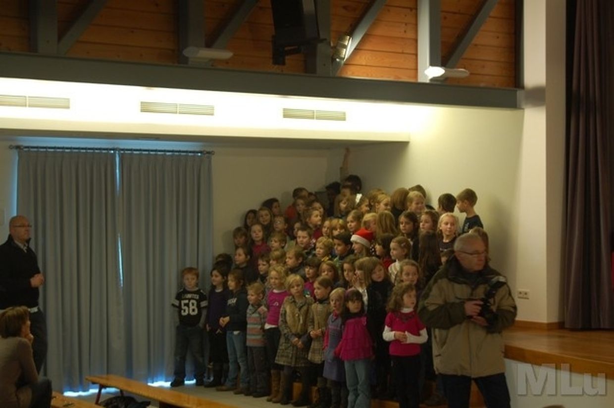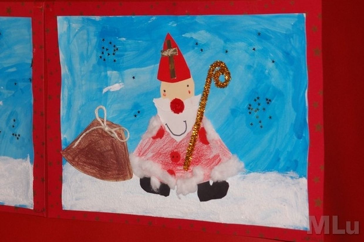 D'Schoulkanner haaten dem Kleeschen a séngen 2 Houséckergesellen ënnert der Lédung vum Schoulpersonnal e puer schéi Lidder gesongen a goufen, no dem Kleeschen sénger Ried, mat enger Tuut mat Schneeckegkéte belount.