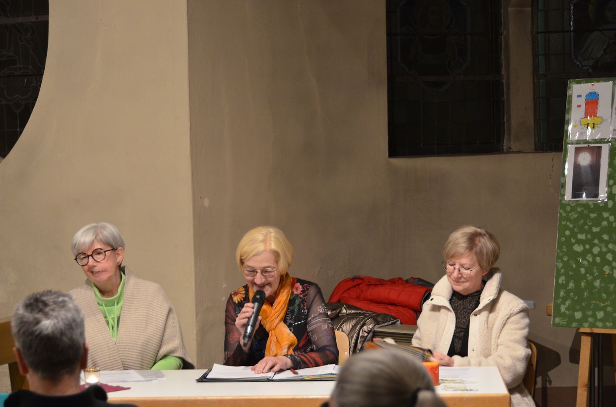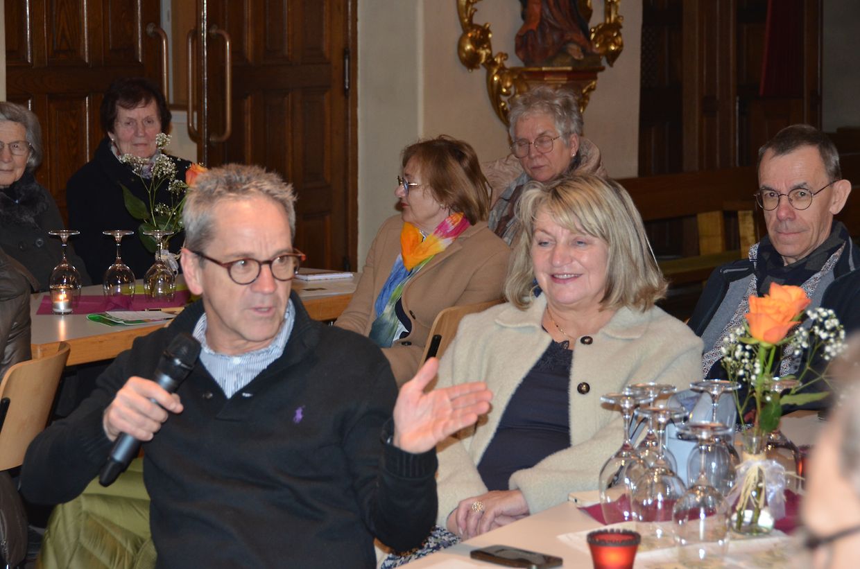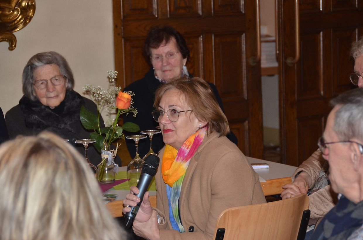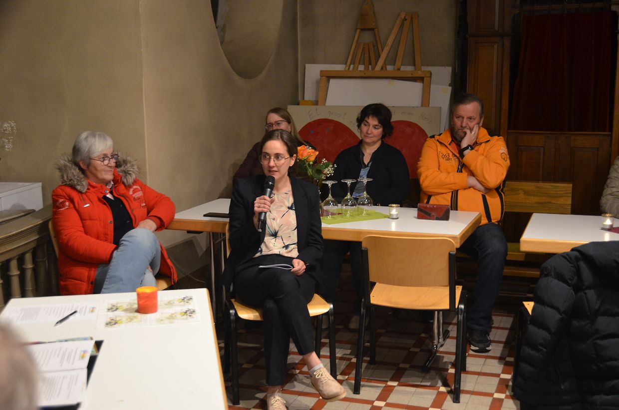 D’Presidentin Martine Lallemand huet d’Invitéë begréisst; vun der Gemeng de Schäffe Jeff Lisarelli, d’Madamm Monique Kuffer d’Madamm Marie-Claire Rasqué Presidentin vun de Fraen a Mamme Par Atertdall Sainte-Claire an Dekanatsvertriederin vum Dekanat Zentrum, d’Éierepresidentin d’Madamm Rosa Pletschette-Wolter, d’Madamm Liliane Loos-Magar aus dem Zentralkommitee vun der ACFL, d’Madamm Rachel Braun Vertriederin vun Hëllef um Terrain, d’Vertrieder vum Nidderpallener Gesank, esou wéi den Här Deche Jean-Jacques Flammang S.C.J.