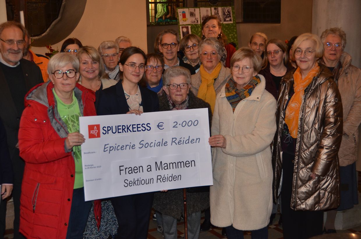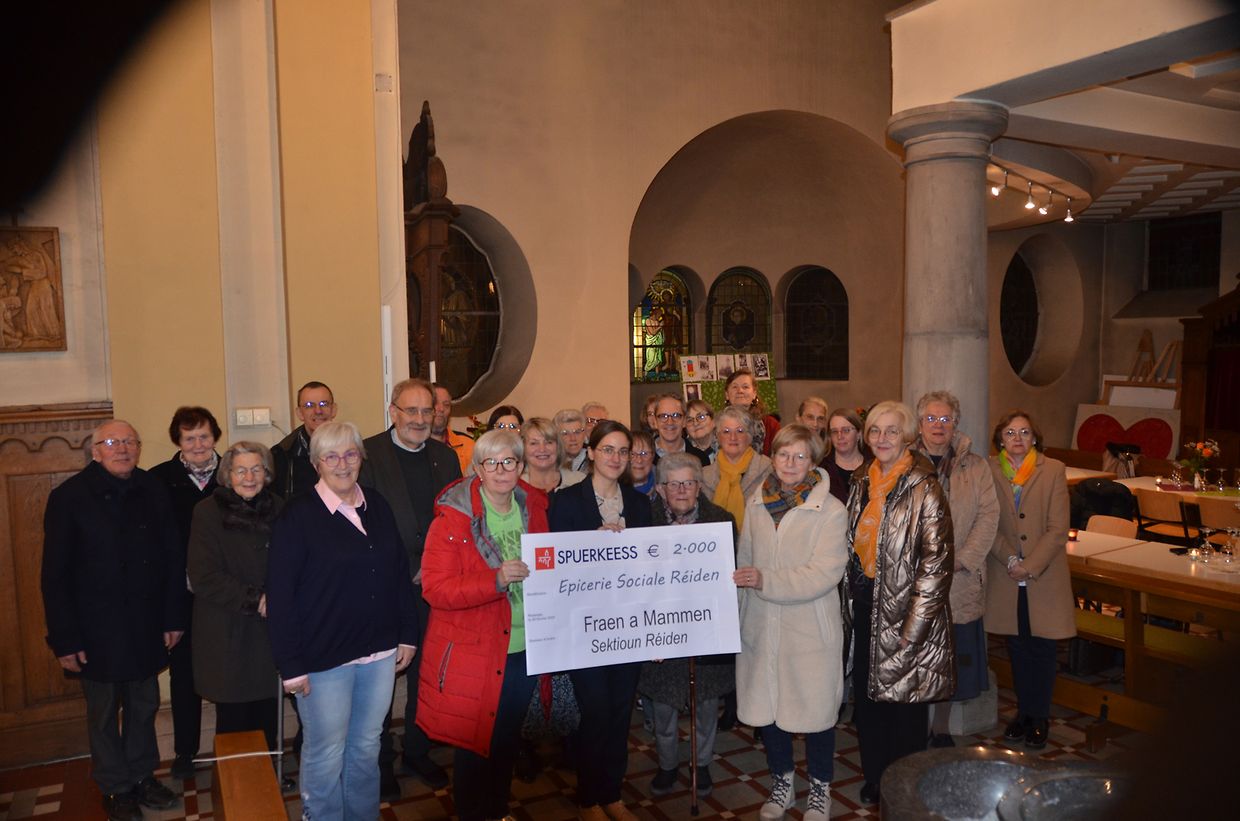 Och wann dat lëscht Joer keng grouss Einnamen do waren, gouf dunn 1 Scheck un «Epicerie sociale Réiden» vun 2000 € iwwerreecht
