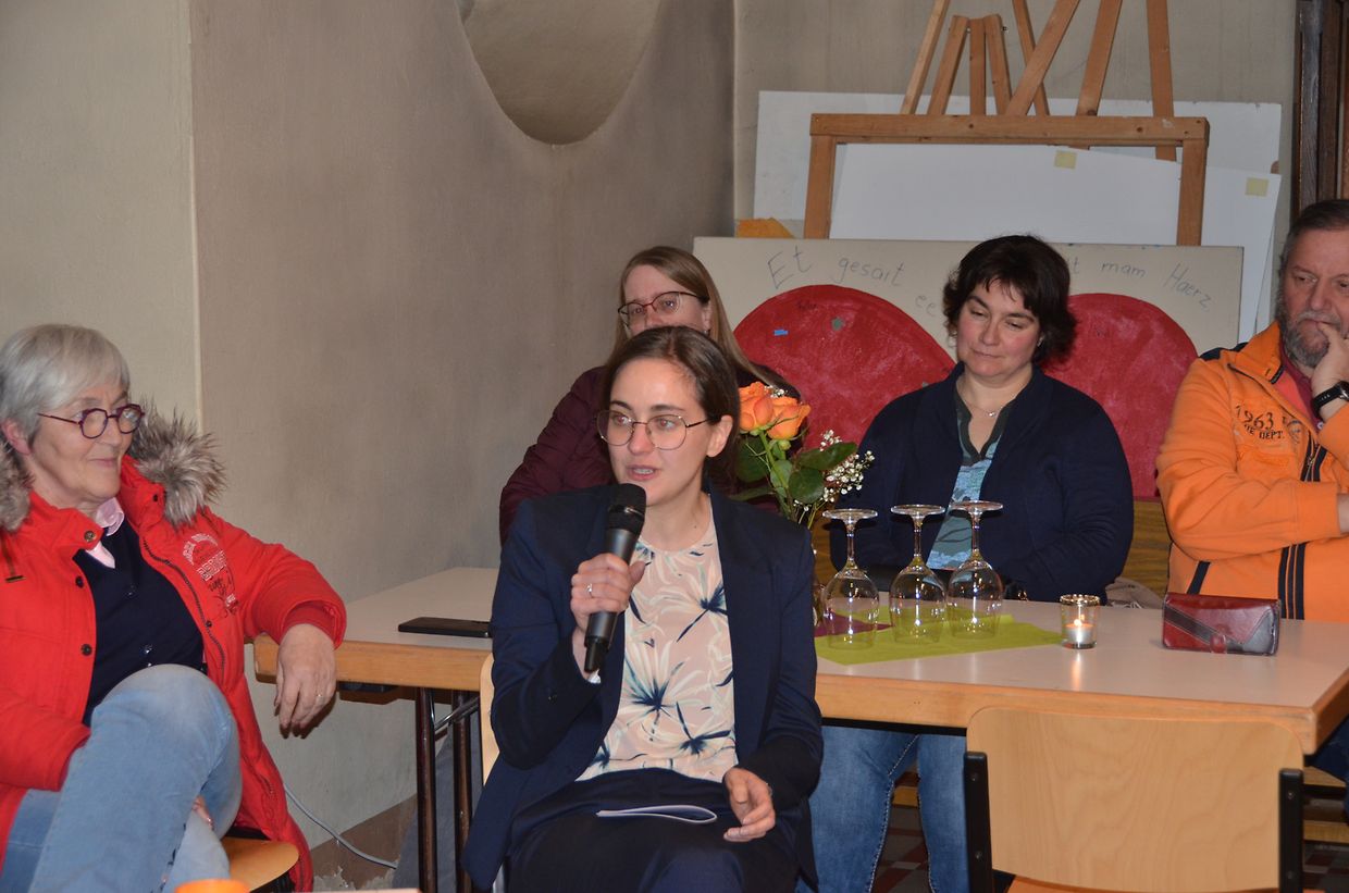 Als Vertriederin vun Hëllef um Terrain, huet Madamm Rachel Braun Merci gesot an dovu profitéiert fir Epicerie sociale ze erklären, wéi d'Sue verwennt ginn. Och wann si vum Staat konventionéiert sinn, mussen si awer nach villes aus der eegener Täsch bezuelen, an ouni Spende wären d'Enner net zesummen ze kréien.