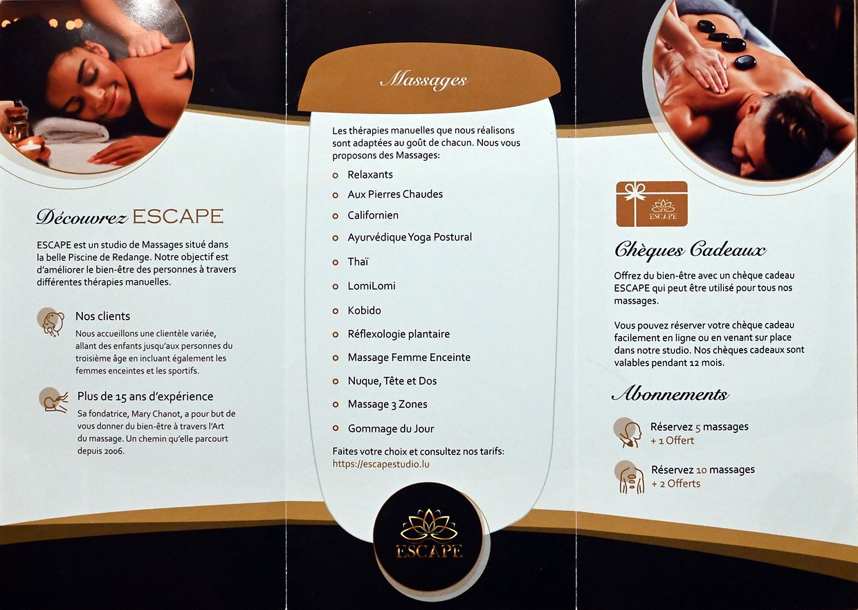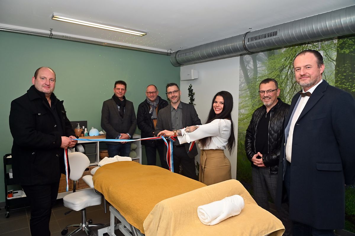 Réiden/Atert: Viru kuerzem konnt de President vum Gemengesyndikat "RéidenerSchwämm" , Patrick Wampach mat senger Ekipp di offiziell Ouverture vum Massagestudio "Escape" an de Raimlechkeete vun der Schwämm viru versammelte Gäscht feieren. Nodeems de Fitness Raum am Sous-sol vum neie Saunasgebai net méi dee groussen Uklang fonnt hat, ass no enger alternativer Notzung gesicht ginn. Hei war et dann och ee richtege Gléckstreffer, dat e mam Mary Chanot eng professionnell Masseuse fonnt huet, déi bereet war hei hire Salon anzeriichten, dee net nëmme fir d'Clientë vun der Schwämm, mee och fir de grand public vu baussen accessibel ass. Duerch hier diversifiéiert Formatioun an deene verschiddensten Techniken ass et der Madame Chanot méiglech ee professionelle Service an engem angeneemen Ambiente unzebidden. Der sympathescher Madamm war et dann och wichteg, sech bei der Direktioun vun der Schwämm ze bedanken fir des Lokalitéite duerfen ze lounen, a sech domadder hire perséinlechen Dram vum Fräiberuffler z'erfëllen. Weider Informatioun fannt Dir op www.escapestudio.lu oder um tel 621 963 388. (RG) (Fotoen: Charles Reiser)