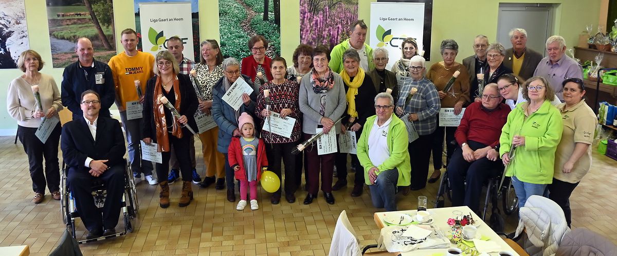Réiden/Atert: Bei vollem Haus am Centre Polyvalent zu Réiden war et fir de President Raymond Schlim vun der Gaart an Heem Sektioun RéIden eng besonnesch Freed di vill Memberen an Éiergäscht ze begréissen an jidderengem Merci ze soen fir di gut Zesummenarbicht an dat intensivt Schaffen iwert dat ganzt Joer. No dem gut gefëllten Aktivitéitsbericht vum Ramona Muller gouf bekannt, dat am laafende Joer folgend Datumer schon fest am Kalenner ageschriwwe sin. Mammefeier (17. Juni); Ausflug op d’Musel (5. August); Hierkenowend (17. November) an Besuch vun engem Chrëschtmaart. Derniewt gin och nach e puer Mol am Joer gut Eisekuchen am Réidener Cactus gebâk. Di positiv Finanzlag vum Christiane Poull ass vun den Keesserevisoren Gaby Raposo an Cedric Bradara als exakt bestätigt gin. Fir di finanziell Ënnerstëtzung vun der Gemeng an och säitens dem Organisator vum Kropemannsfest, gouf et en extra Merci. Als Vertrieder vum CTF- Zentralcomité ass den Léon Wietor, den niewt senge bäschte Gléckwënsch un die Réidener Sektioun fir hiren Aasatz, un die staark besicht Fortbildungskursen, de Projet vun engem neien geplangtem Heem , dem zukunftweisendem Informatiksystem an denen villen Ufroen vun private Leit fir d’Planung vun enger Gaardenanlag fir Doheem Geméiss an Uebst selwer ze produzéiren, agaangen. Och gouf un di kirzlich verstuerwen CTF- Presidenten Metty Loos an Jean Kieffer erënnert . A senger Ried huet de Buergermeeschter Henri Gerekens di vill Aktivitéiten vun der Réidener CTF- Sektioun mat hirem dynamischen Komitee zesummen mat hiren ronn 300 Memberen ënnerstrach an dem Gaardeveräin aus der Gemeng Réiden fir Zukunft nach vill Freed am Gaard an engt erfollegräicht Joer gewënscht. Mat der CTF- Éiernodel am Sëlwer, Bronze a Gold sin och 30 Memberen ausgezeechent gin. Ofschléissend sin eng ganz Reih vu Gewënner, déi um Concours, Villes et Villages fleuris mat gemeet hun, déi an de Summerméint vum Chantal Wirtz a Alex Weimerskirch als onofhängig Jury bewert gi sin, mat engemn Akaafsbong geéiert gin. Sektioun Lannen: Monique Schroeder- Siebenaller an Jean- Pierre Wohner. Sektioun Nojem: Roger Schneider- Hengen, Carmo Garcia an Marcel Becker- Kaufmann. Niederpallen: Nicolas Thein- Mack, Marie- Thérèse Decker an Gilbert Reding- Muller. Sektioun Ospern: Liliane Pletgen- Reding, Marie- Thérèse Schleich, Christiane Wiance- Zigrand an Margot Barthel- Reckinger. Sektioun Reichlingen: Danielle a Mike Simon- Arendt an Ben Leiner. Sektioun Réiden/Atert: Réidener Gemeng- Otto Nils, Marc Peller- Kirchen, Nico Esser, Joé Reiser, Léon Fox, Alex Riffer, Paul Reiser- Goergen, Maggy Hensgen, Jean Conrardy, Lydie Renoir -Goergen an Monique Kuffer. Das aktuelle Komitee: Raymond Schlim (President); Charles Welter (Vizepresident); Nadine Nickts an Mireille Deprez (Sekretärinnen); Christiane a Jean Poull (Finanzverwalter). Weider Mitglieder sin: Andrée Weber, Ramona Muller, Karin Knaus an Jemp Schartz. (CR) (Foto: Charles Reiser)