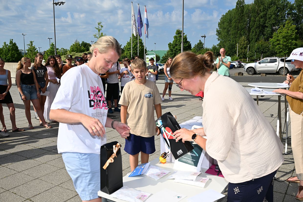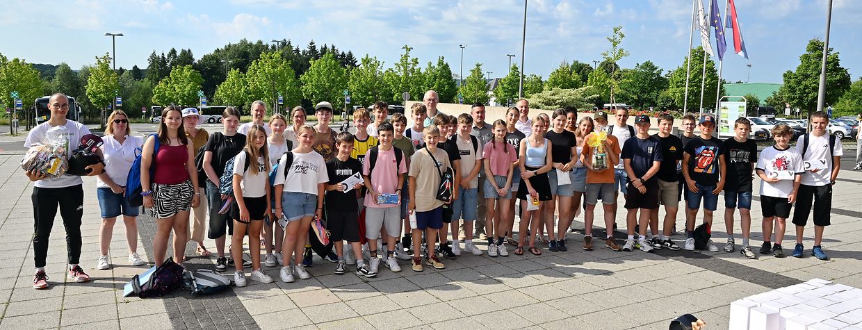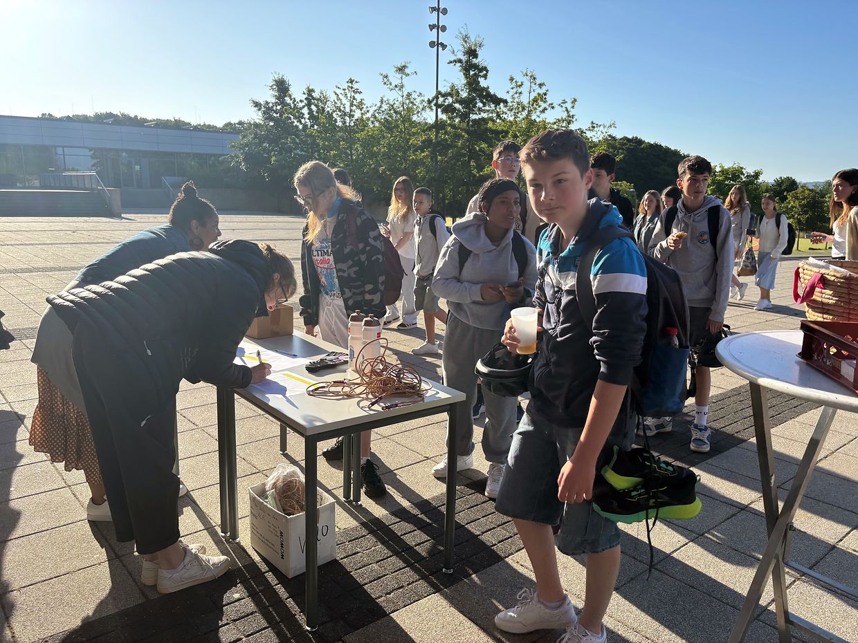 Réiden/Atert: Muencher engem sin a läschter Zäit di grouss Plakaten lanscht d‘Stroossen an der Géigend vu Réiden/Atert ofgefall, mam Vermierk „Mam Vëlo an den ALR“ vum 24.06 - 01.07 Bei der 9. Editioun waren dest Joer ronn 75 Schüler an 19 Leit vum Personal mam Vëlo wärend 6 Deeg ënnerwee fir an den Lycée zu Réiden ze pedaléieren. Bei deser Kampagne sin nit manner wéi 6.408 Kilometer gefuer gin. All Moien hunn si e Jus an ee croissant zerweéiert kritt, an Owes, bei waarmen Wieder, é Stéck gut Waassermeloun. En Dënsden, den 1. Juli, war dann d’Präisiwerreechung beim ALR wou all Schüler den bei der Editioun 2025 um Vëlo matgemeet hat, mat engem Präis belount gin. Dobéi hun si fir hiren besonnëschen Effort nit nëmmen vum Personal awer och vum Direkter Jeff Kohnen mat engem kräftigen Applaus gratuléiert kritt. (CR ( Fotoen: Charles Reiser)