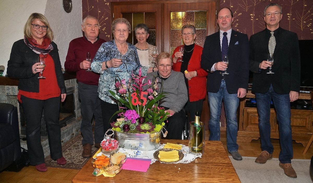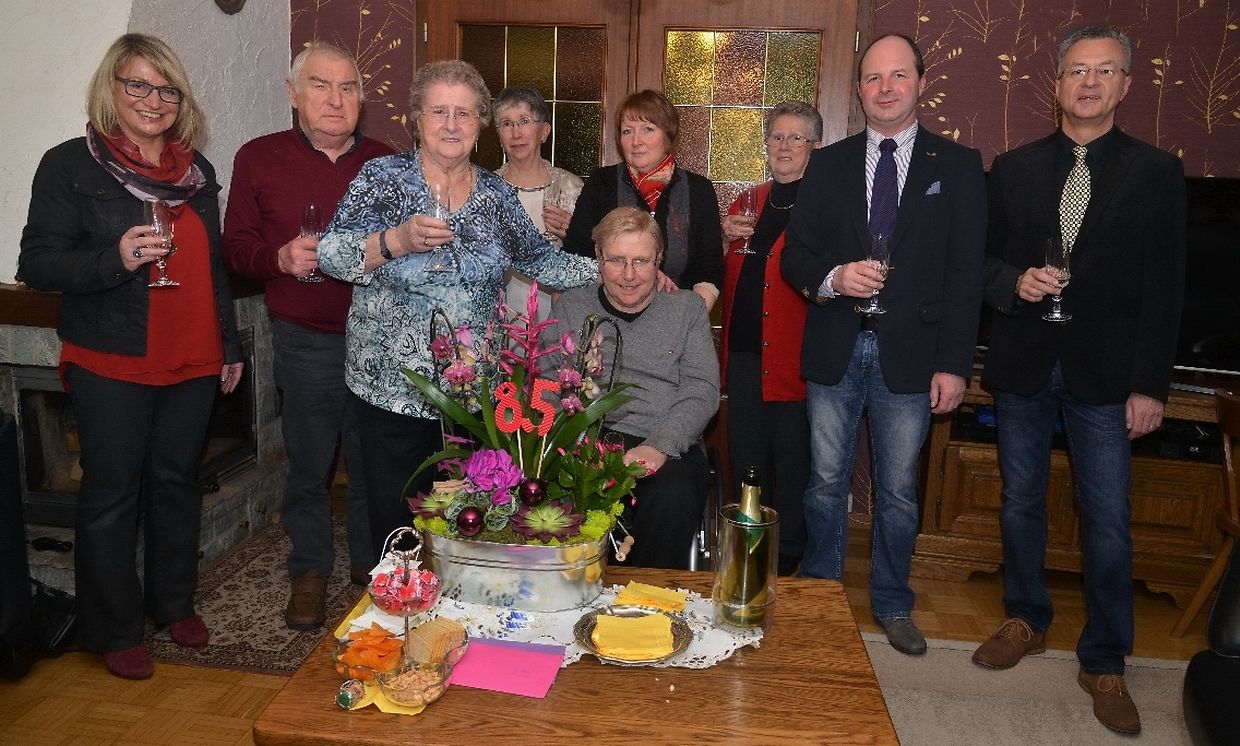 Reichlingen: Mit 85 Jahren noch recht fit zu sein, dieses Glück bescherte neulich Irma Müller- Müller aus Reichlingen, die am 23. Dezember 1931 als älteste Tochter von sechs Kindern des Ehepaares Nic Müller und Marie Scheuer in Strassen das Licht der Welt erblickte. Ihre Jugendzeit verbrachte die Jubilarin mit ihren Eltern in Hostert/ Rambrouch. Im Juni 1950 wurde Hochzeit gefeiert mit Willy Müller aus Zemmer (D), der als Maurer beschäftigt war. Das Paar zog im Jahre 1956 nach Reichlingen. Aus ihrer Ehe ging ein Sohn hervor. Heute zählen zwei Enkelkinder und vier Urenkel zur Familie Müller. Ehemann Willy verstarb leider viel zu früh am 1. August 1981. Mit einem schönen Blumengebinde überraschten Monique Kuffer, Henri Gerekens und Paul Zacharias, das 85-jährige Geburtstagskind, Irma Müller und überbrachten ihr die allerbesten Glückwünsche seitens der Gemeindeverwaltung Redingen/Attert. Den Wünschen schlossen sich die Familienmitglieder auch gerne an, wofür sich die Geehrte auch ganz besonders bedankte. (TEXT/FOTO: CHARLES REISER)
