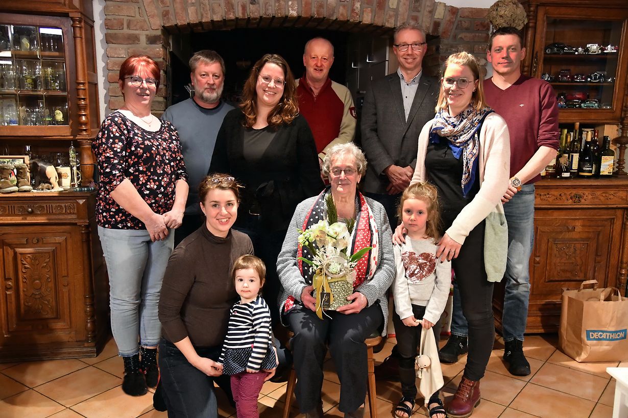 Rëmmerich: Bei ville Gemengen am Land ass de schéine Brauch, fir hir Matbierger zum Gebuertsdag ze éieren. Esou haat de Buergermeeschter Marc Gergen mat sengen Schäffe Marc Rehlinger an Fernand Müller viru kurzem di grouss Éier dem Josette Ruppert- Schroeder vu Rëmmerich mat enger Coupe schéiner Orchideen, am Numm vun der Préizerdauler Gemeng, die allerbäscht Gléckwënsch zum 85. Geburtsdag ze iwerbrëngen. D’Josette Schroeder gouf den 10. Dezember 1936 als jëngst Duechter vun acht Kanner vum Brautpuer Nic Schroeder an Melanie Wagner zu Proz gebuer. Den Dag vun der Hochzäit mam Pier Ruppert vu Rëmmerich war den 19. Abrël 1955.Virun hirem Bestiednis huet hire Mann Pier op der Duchfabrik zu Platen geschafft an ass nach am selwechte Joer bis zu senger Pensioun am Joer 1987 sengt deeglecht Brout bei der Arbed zu Déifferdeng verdinge gaang. Niewebäi hun sie zwee nach e klenge Bauerebetrieb zu Rëmmerich zesumme gefouert. Aus hirem Bestiednis sin zwéin Jongen ervirgaangen. Haut zielen fënnef Enkel- an dräi Urenkelkanner zu der Famill Ruppert- Schroeder. Leider ass de Pier Ruppert schon den 21. September 2006 verstuerwen. Bei der Jubilarin Josette déi sech nach bei gudder Gesondheet fillt ass d’Fräizäit gut gefëllt mat Strëcken an och als leidenschaftlich Kaartespillerin am lokalen Senioreveräin,der Amicale vum drëtten Alter Préizerdaul. A gudder Gesellschaft ass d‘Glas zesummen mat der Famill erhuewe gin, an op weider gesond an zefridde Joeren ugestouss ginn. (CR) (FOTO: CHARLES REISER)