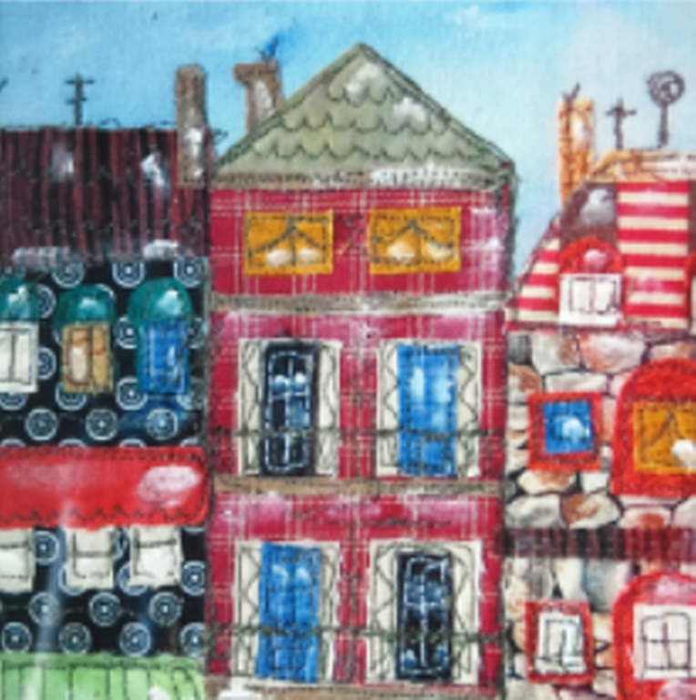 GREISCHER Alice, Christnach, Stoffkollagen, Kartonage, Patchwork
