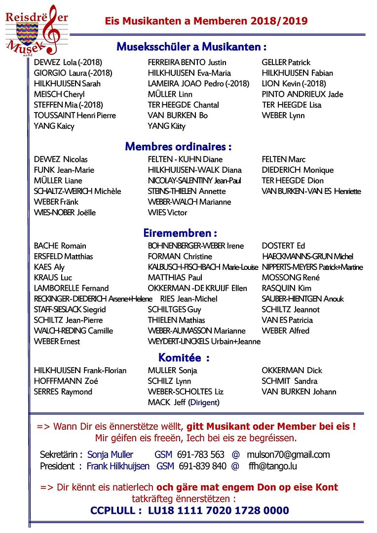 Für den Vorstand der Reisdrëfer Musek a.s.b.l.