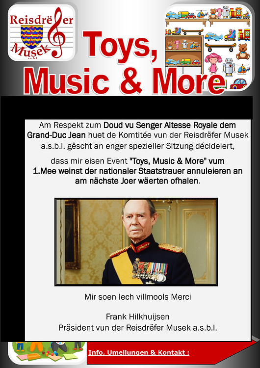 Annulation de la manifestation "Toys, Music & More" / Déces de S.A.R. Grand Duc