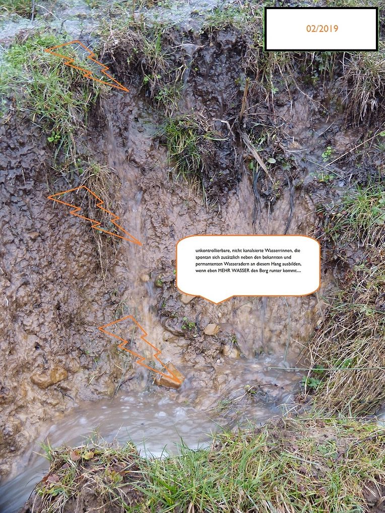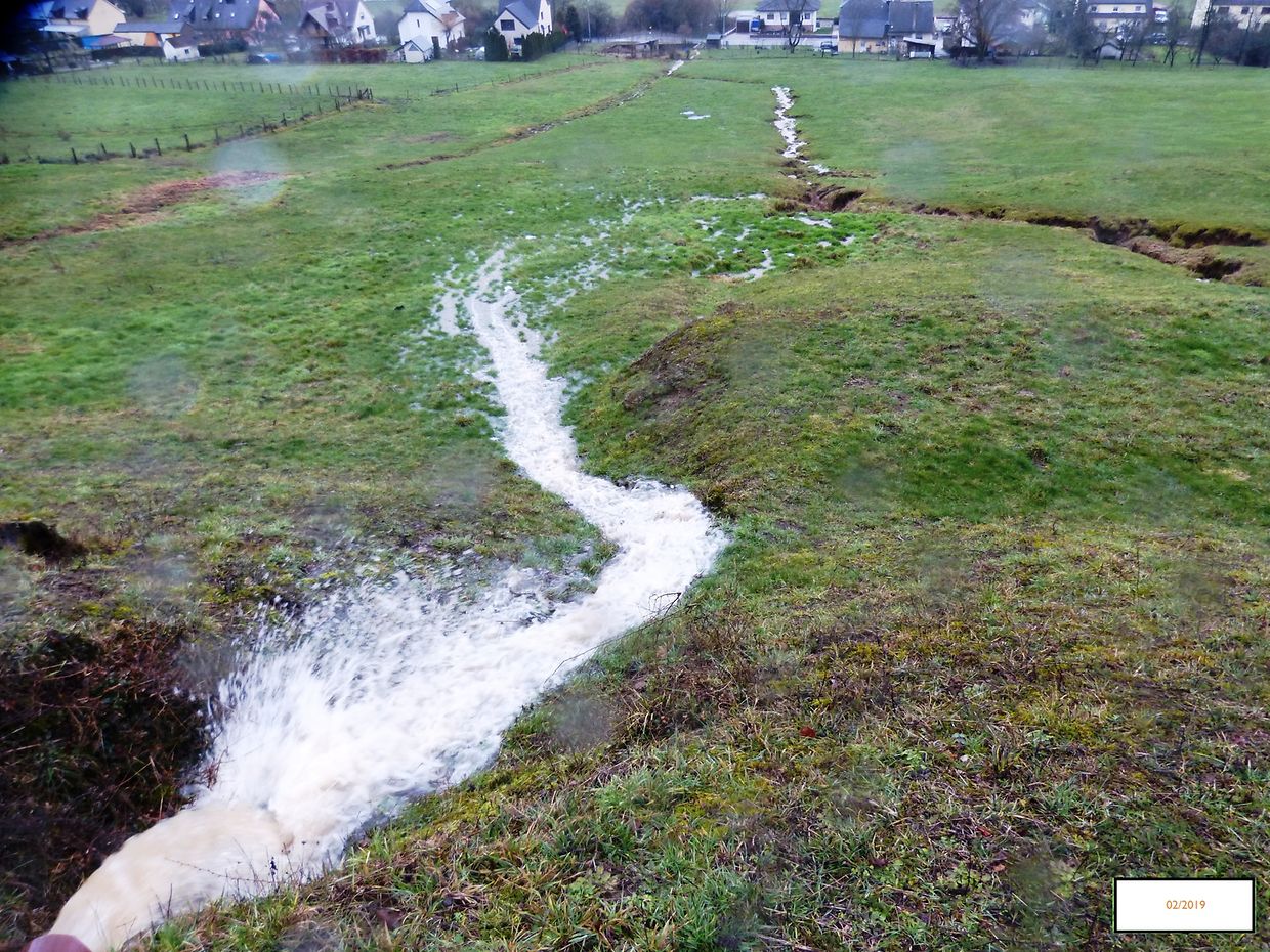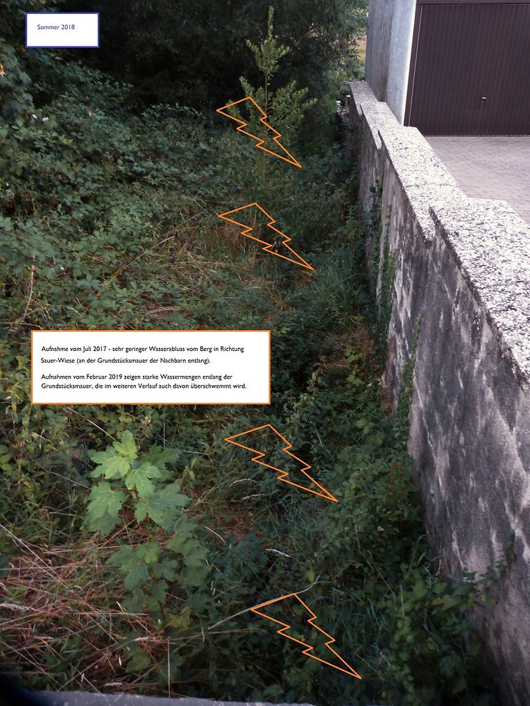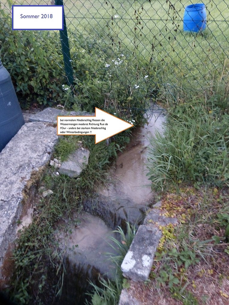 Um diese Behauptung zu prüfen, sind hier und heute ganz aktuelle Fotos zu präsentieren, die jeden Beteiligten in diesem Verfahren zum Nachdenken bringen sollten, ob es wirklich wahr oder unwahr ist, dass in Reisdorf immer nur die selbe Menge Wasser den Berg herunter kommt. Zum Vergleich dienen identische Fotos aus dem Sommer 2017 und 2018.