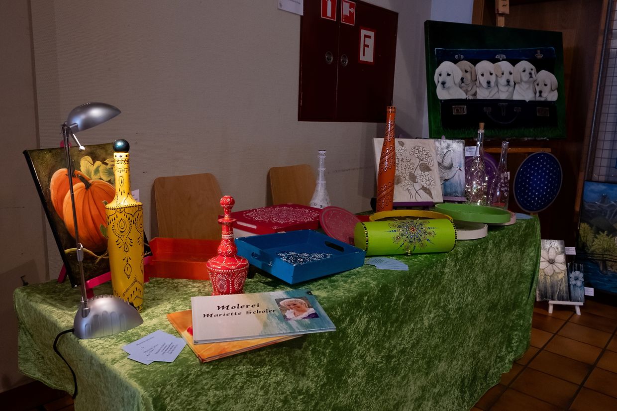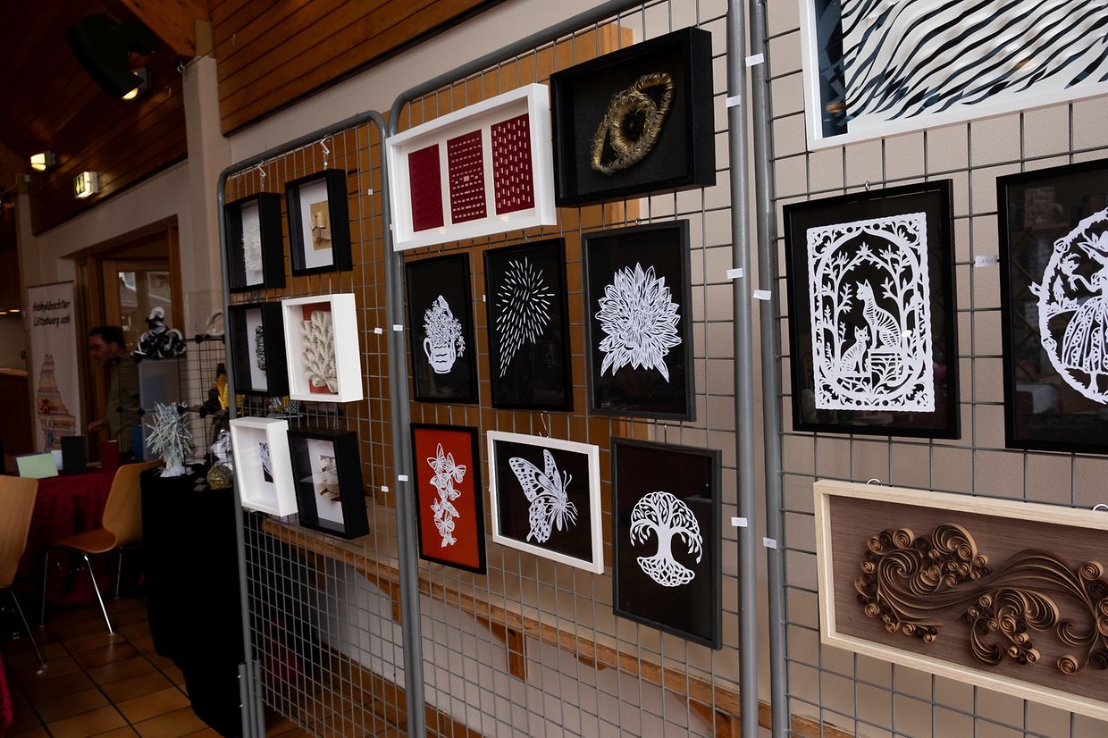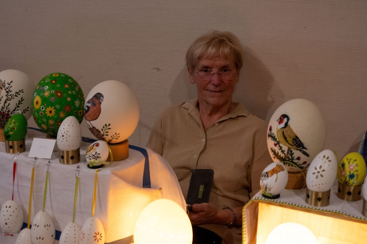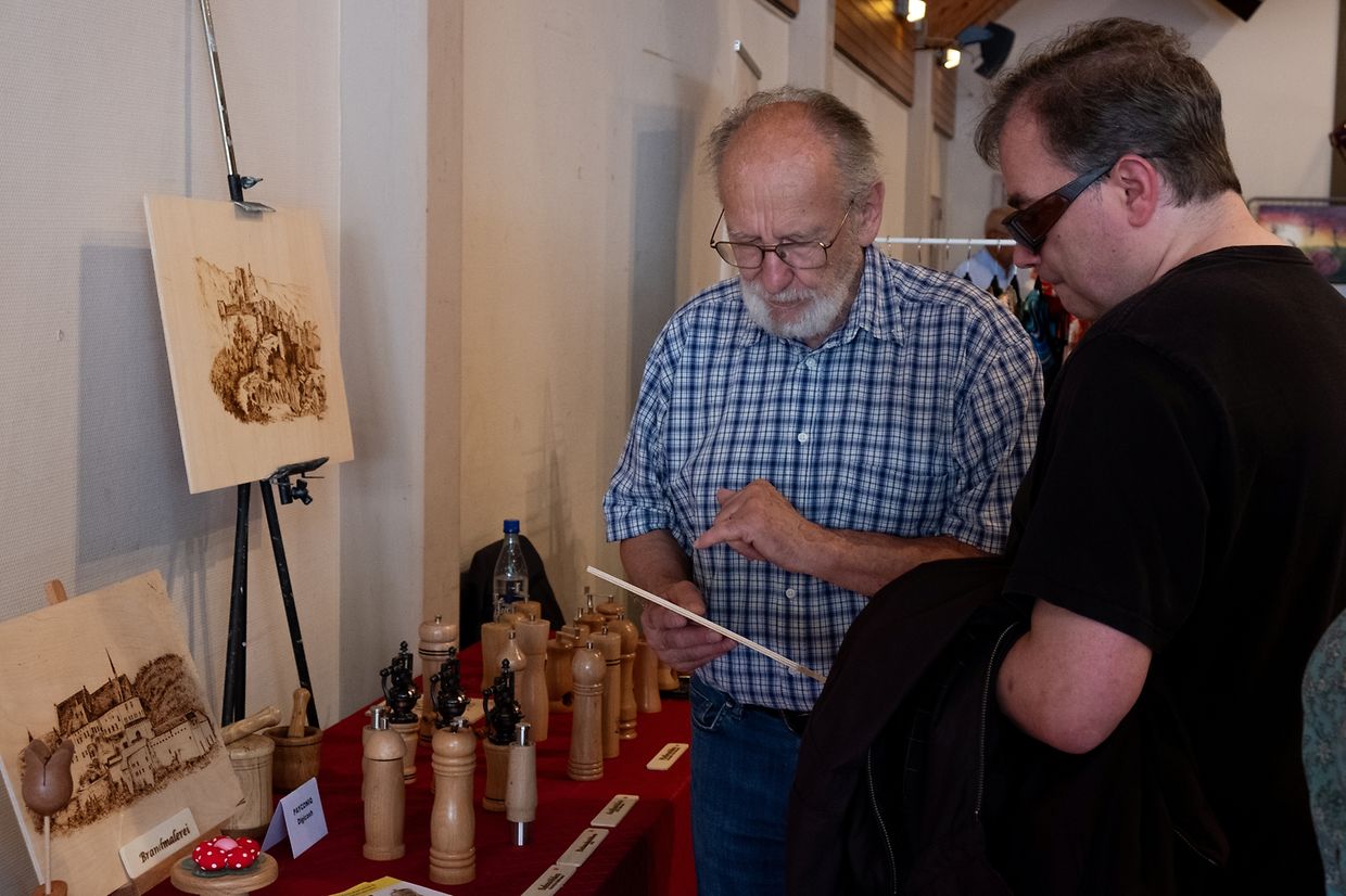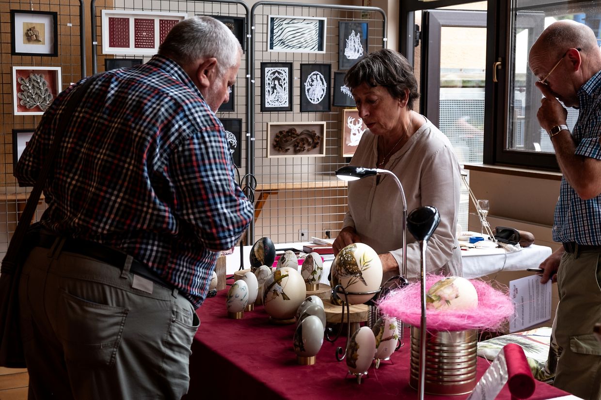 D’Visiteure konnten eng breet Pallette u Konschtwierker bewonneren. Vun filigranen Holzaarbechten iwwer stilvoll Poschen an eenzegaartege Bijouen bis hin zu faarwefroue Biller a kreativen Pabeier-Projeten – fir all Goût war eppes dobäi. Besonnesch ervirzehiewe waren déi konschtvoll bemoolte Strausseneeër, déi handgemaachte Schreifgeräter aus Holz an déi faszinéierend Airbrush-Konschtwierker. Och déi traditionell Technike wéi Klëppelen an Dréchselaarbechten hu groussen Uklang fonnt.