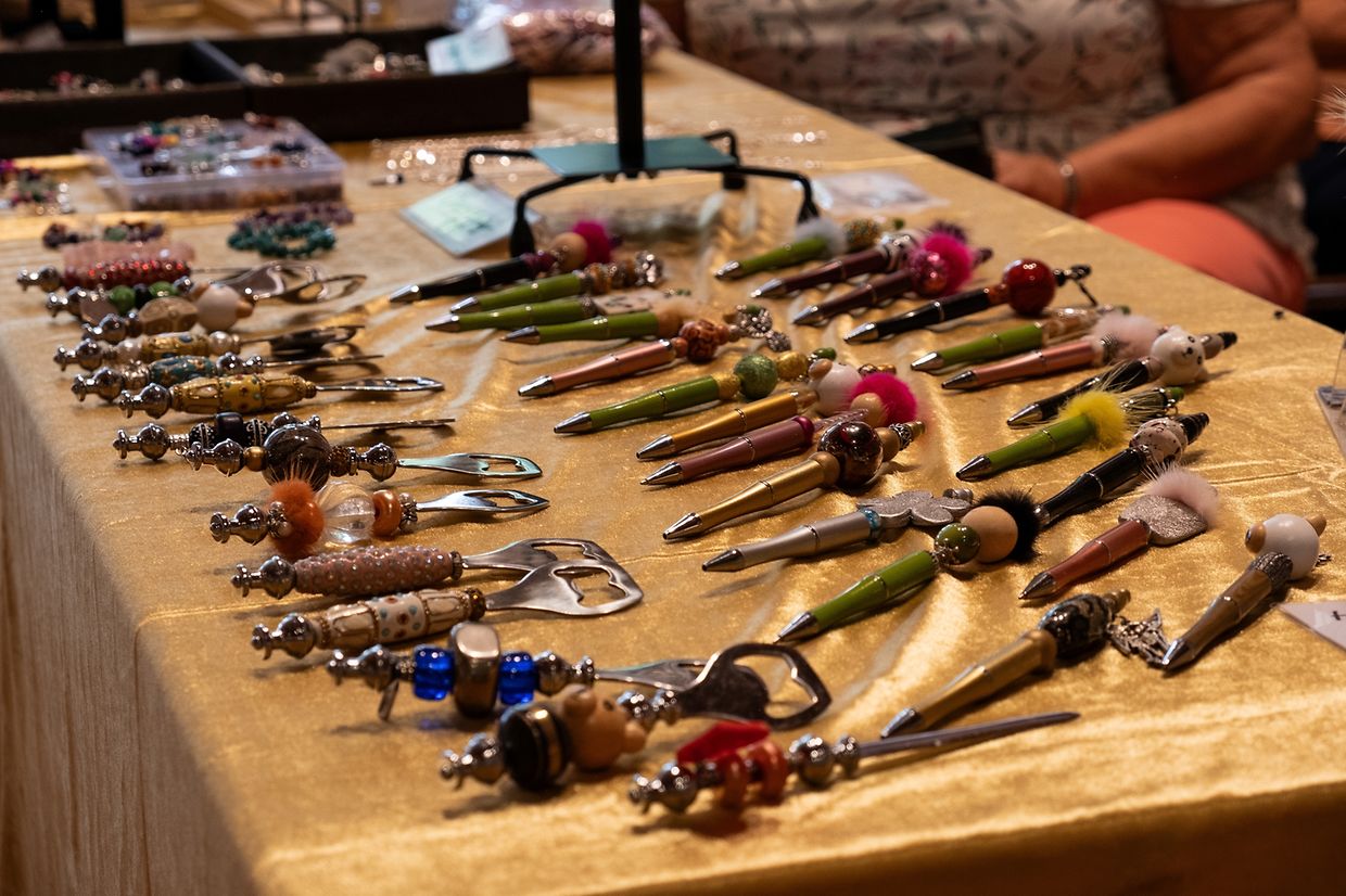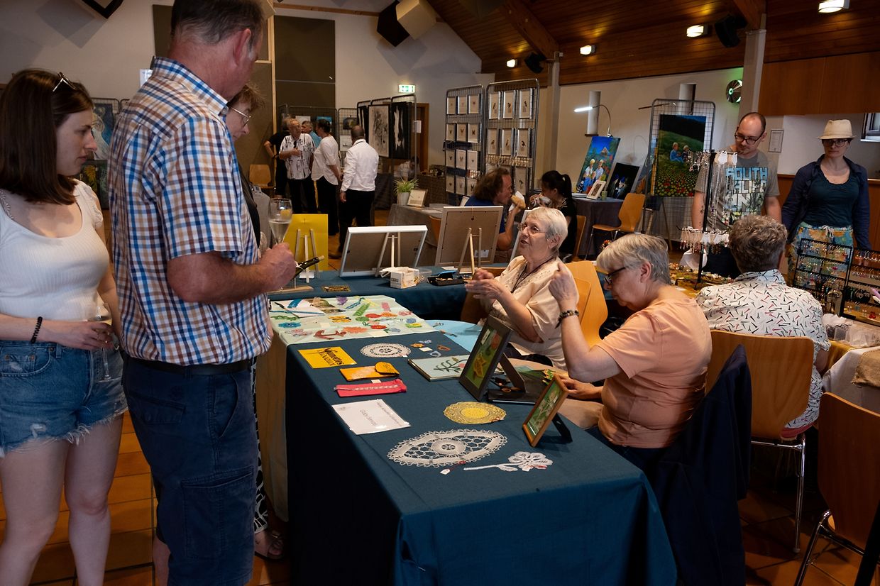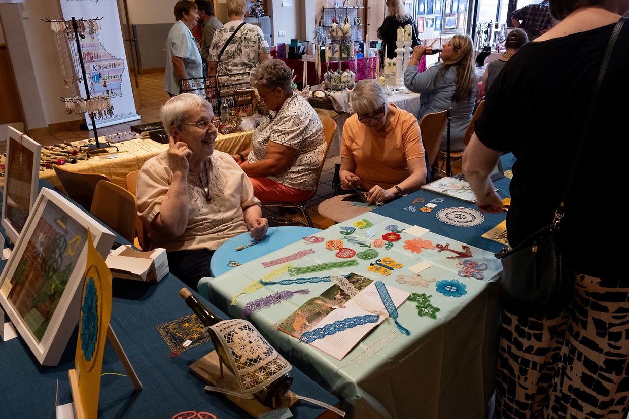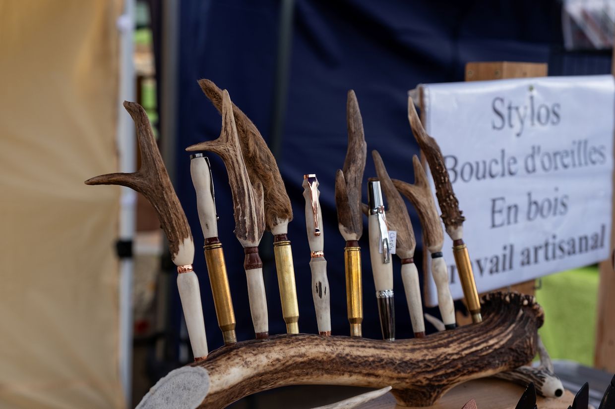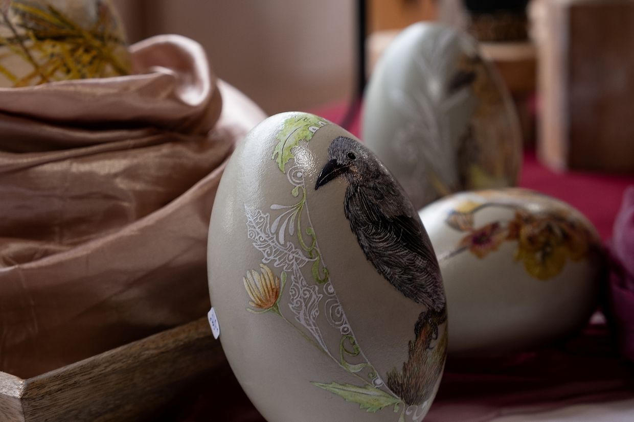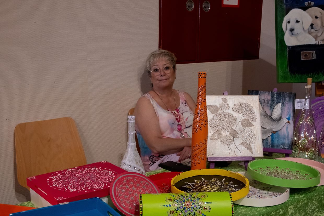 D’Visiteure konnten eng breet Pallette u Konschtwierker bewonneren. Vun filigranen Holzaarbechten iwwer stilvoll Poschen an eenzegaartege Bijouen bis hin zu faarwefroue Biller a kreativen Pabeier-Projeten – fir all Goût war eppes dobäi. Besonnesch ervirzehiewe waren déi konschtvoll bemoolte Strausseneeër, déi handgemaachte Schreifgeräter aus Holz an déi faszinéierend Airbrush-Konschtwierker. Och déi traditionell Technike wéi Klëppelen an Dréchselaarbechten hu groussen Uklang fonnt.
