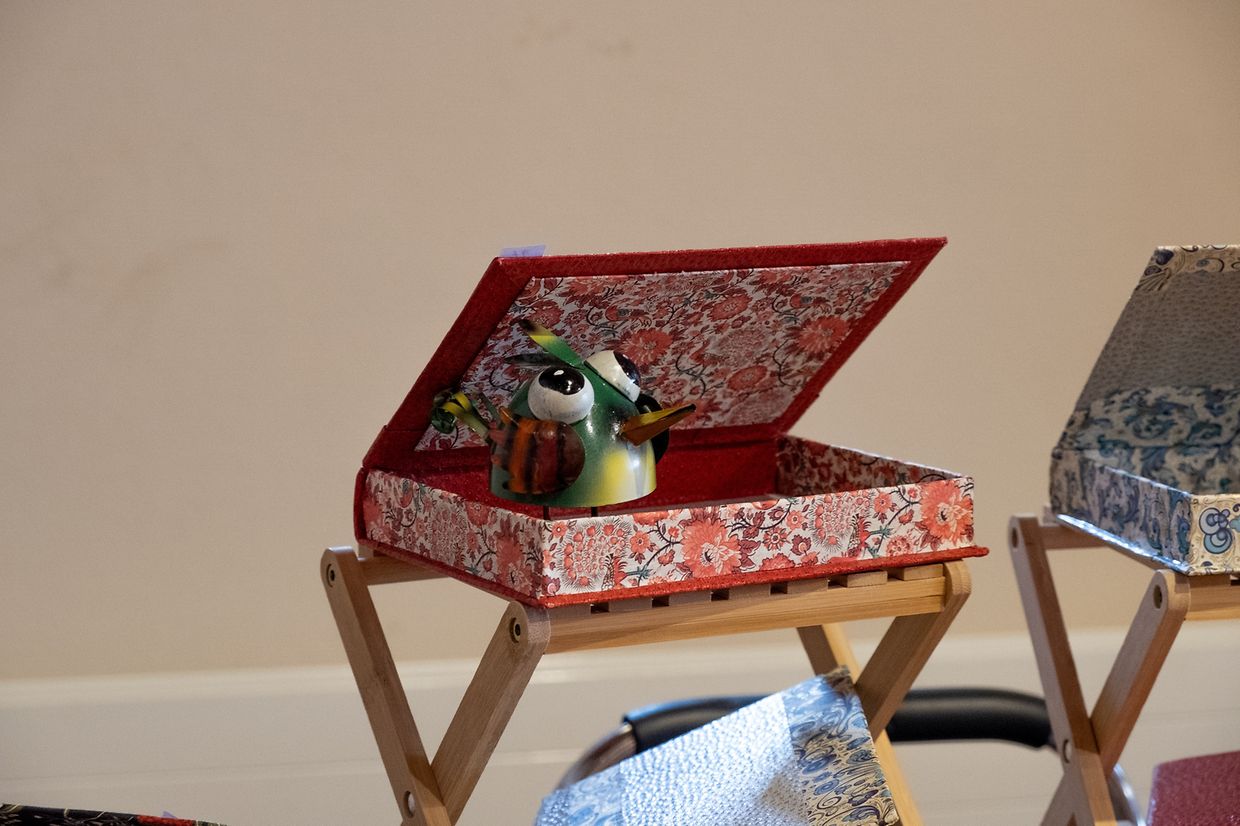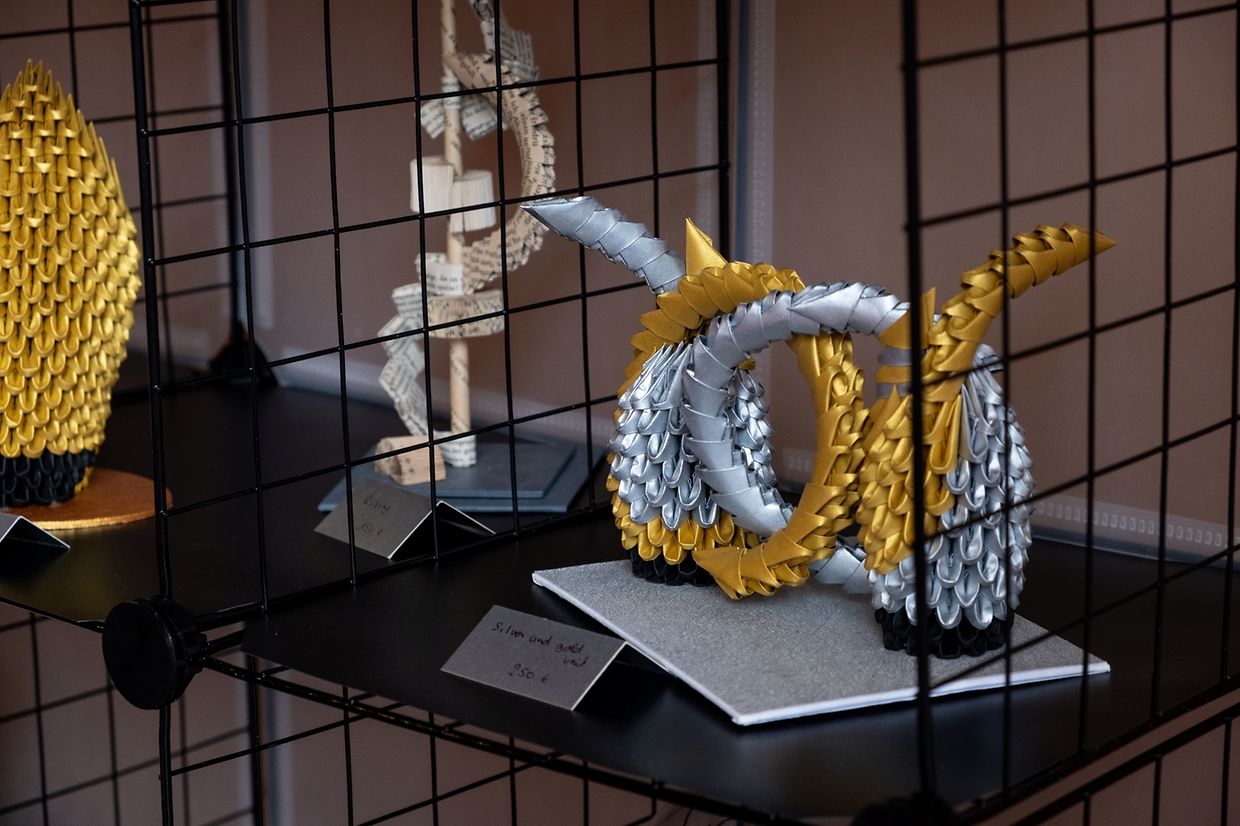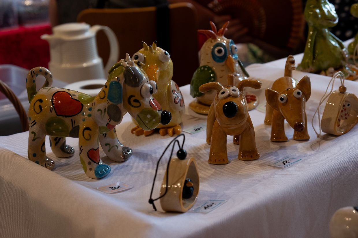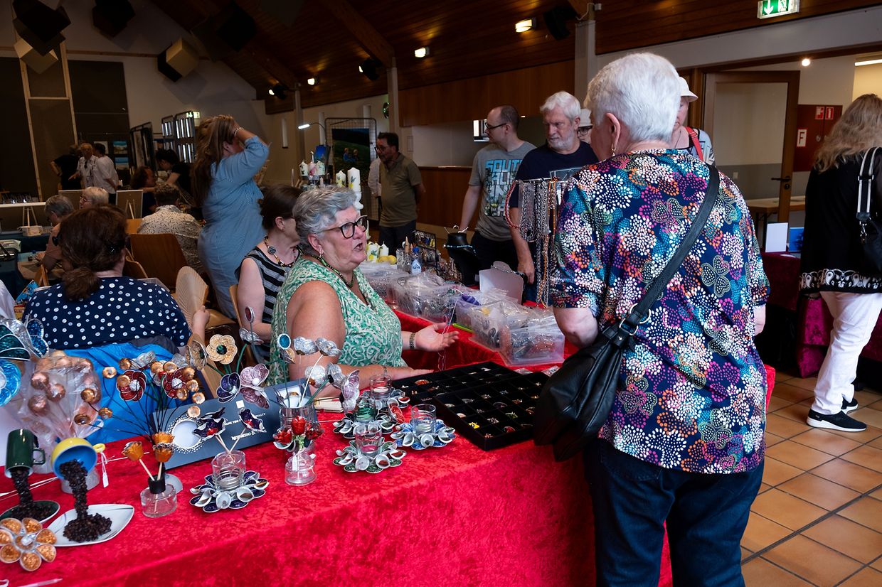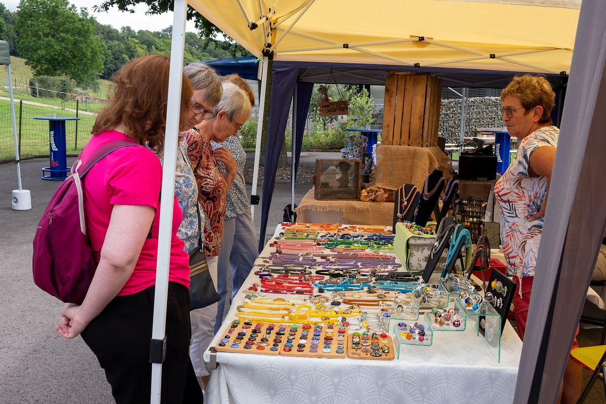 D’Visiteure konnten eng breet Pallette u Konschtwierker bewonneren. Vun filigranen Holzaarbechten iwwer stilvoll Poschen an eenzegaartege Bijouen bis hin zu faarwefroue Biller a kreativen Pabeier-Projeten – fir all Goût war eppes dobäi. Besonnesch ervirzehiewe waren déi konschtvoll bemoolte Strausseneeër, déi handgemaachte Schreifgeräter aus Holz an déi faszinéierend Airbrush-Konschtwierker. Och déi traditionell Technike wéi Klëppelen an Dréchselaarbechten hu groussen Uklang fonnt.