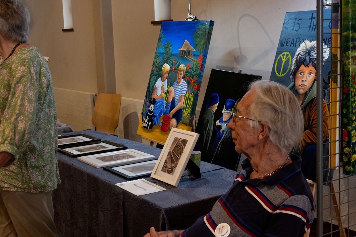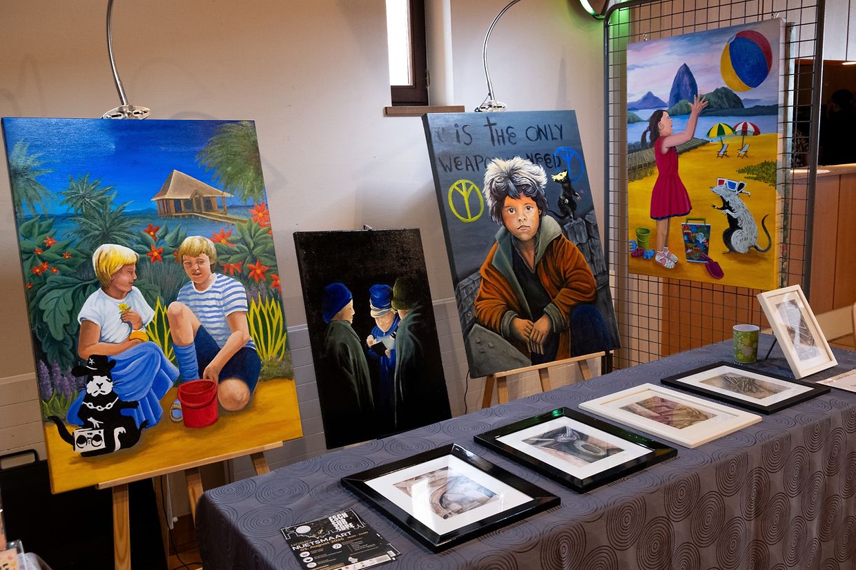 Am ganzen hu 34 talentéiert Membere vun Hobbykënschtler Lëtzebuerg hir selwer hiergestallte Konschtwierker presentéiert. D’Diversitéit vun den ausgestallte Wierker war beandrockend: 21 Aussteller hunn hir Konschtwierker am Banneraum vum Gillenhaus gewisen, wärend 13 weider hir Kreatiounen am Bausseberäich presentéiert hunn.