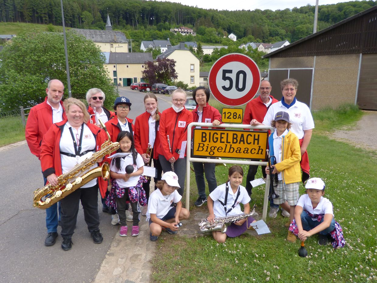 Traditionnel wurde auch dieses Jahr wieder anlässlich der Bigelbacher Kirmes der Hämmelmarsch in den Strassen des kleinen Ortes durch die Reisdrëfer Kirmes gespielt, die dieses Jahr erstmals mit einer grossen Gruppe an ganz jungen Musikanten und Musikantinnen auf Tour gegangen ist.